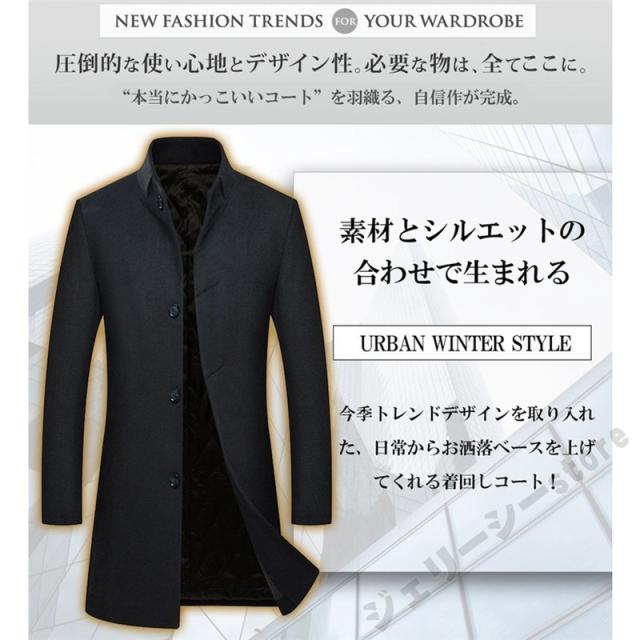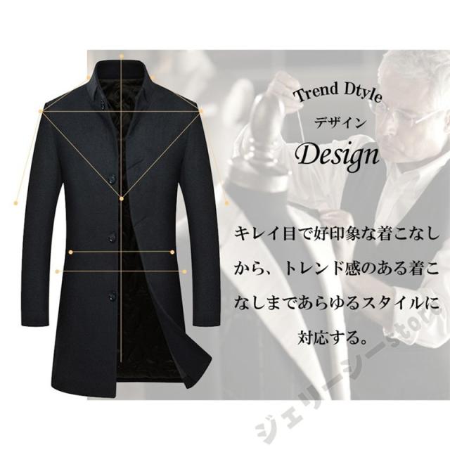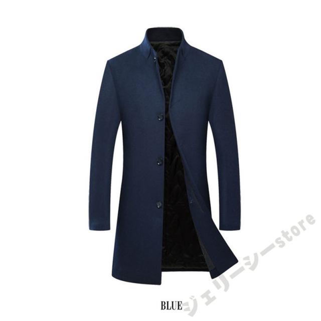 スタンドカラーコート チェスターコート 中綿コート ロングコート ロング ジャケット メンズ アウター カジュアル スーツ地 暖か ウール 冬服