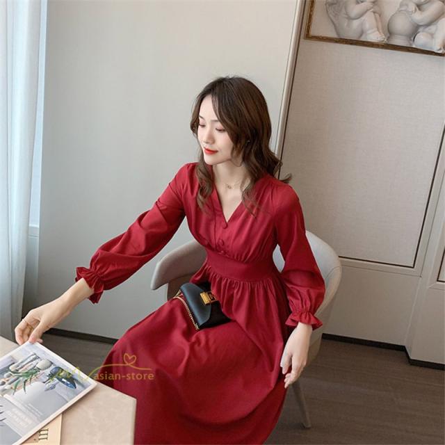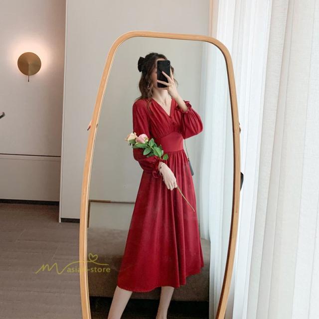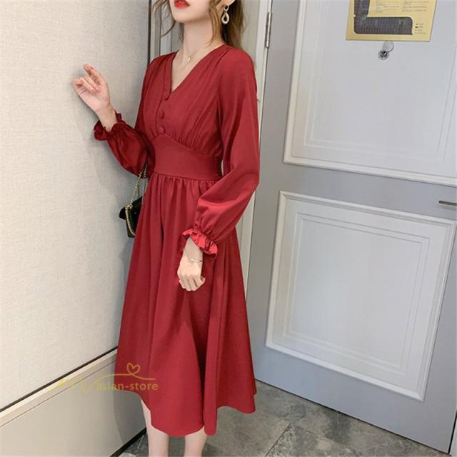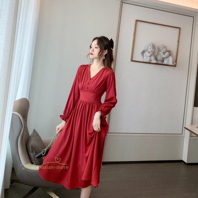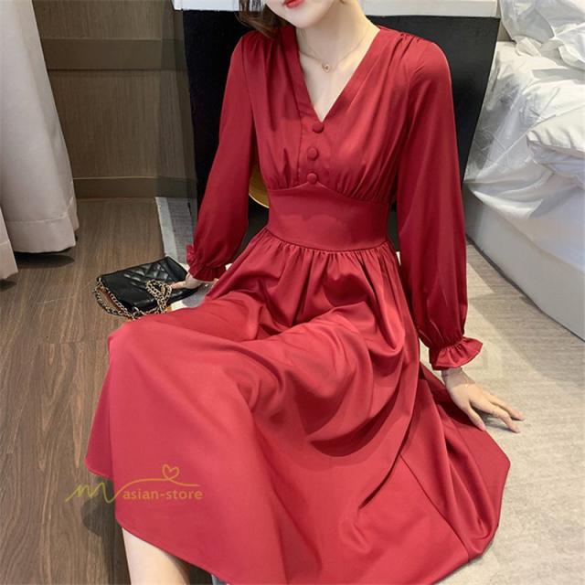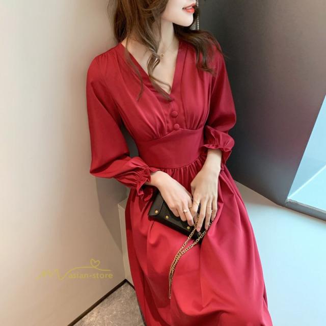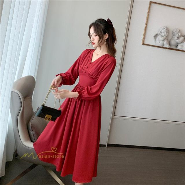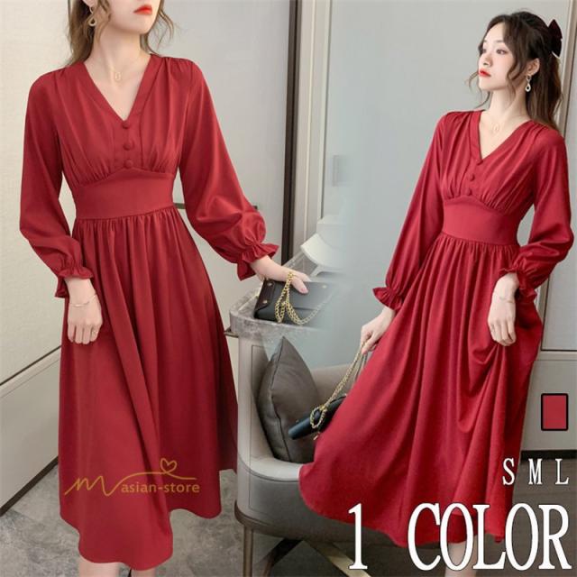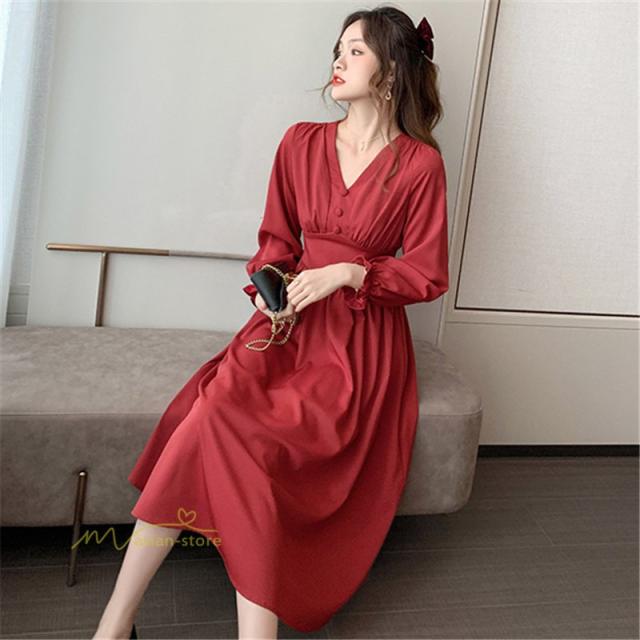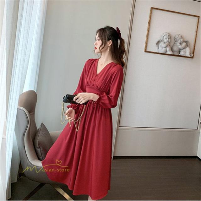 ワンピース レディースワンピース 春夏 お呼ばれ フォーマル 韓国風 着痩せ 二次会 結婚式 通勤 秋 Vネック シフォンワンピ シンプル カジュアル 2021作 無地