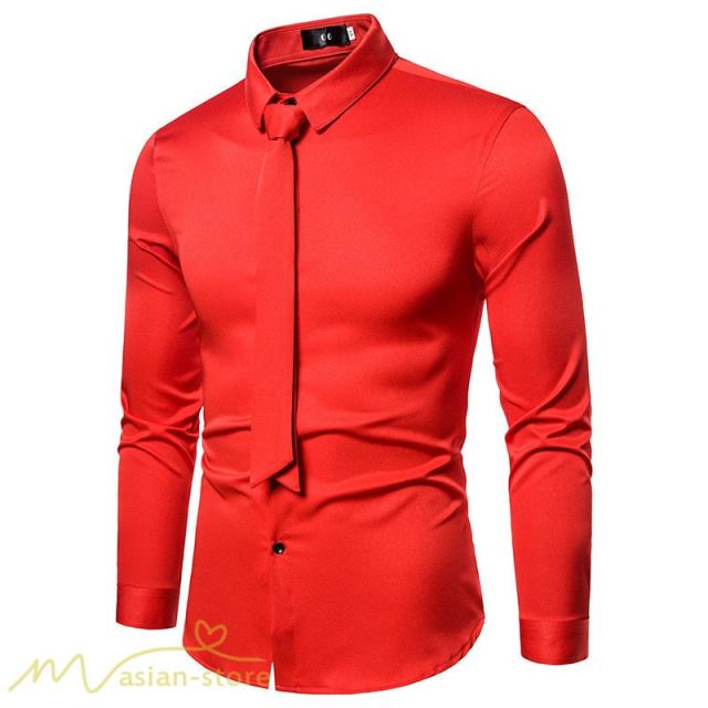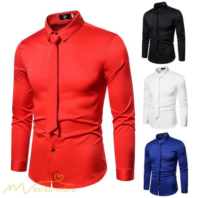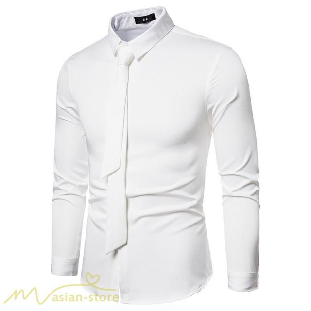 シャツ 秋 冬 長袖 ビジネスシャツ フォーマル オフィス 無地 メンズトップス 開襟 人気 カジュアル 定番 メンズシャツ ネクタイ付き 大きいサイズ おしゃれ