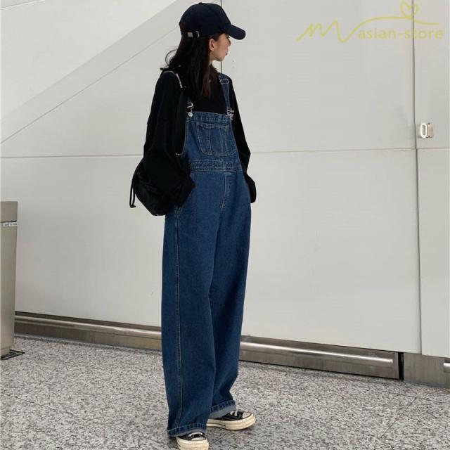 デニムサロペット ストレートパンツ 九分丈パンツ 着痩せ レディース ジーンズ デイリーコーデ オーバーオール ワイドパンツ ハイウエスト 無地 かっこいい