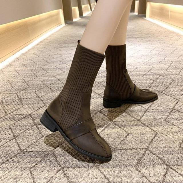 リブニットブーツ ブーツ ソックスブーツ ショートブーツ レディース ニット ストレッチ 靴 レディースシューズ 美脚 歩きやすい 疲れない カジュアル pu 秋冬