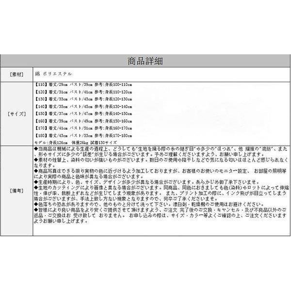 | サイズについての説明 | サイズ: 【110】着丈/29cm バスト/39cm 参考:身長100-110cm 【120】着丈/31cm バスト/41cm 参考:身長110-120cm 【130】着丈/33cm バスト/43cm 参考:身長120-130cm 【140】着丈/35cm バスト/45cm 参考:身長130-140cm 【150】着丈/37cm バスト/47cm 参考:身長140-150cm 【160】着丈/39cm バスト/49cm 参考:身長150-160cm 【170】着丈/41cm バスト/51cm 参考:身長160-170cm 【180】着丈/43cm バスト/53cm 参考:身長170-180cm |