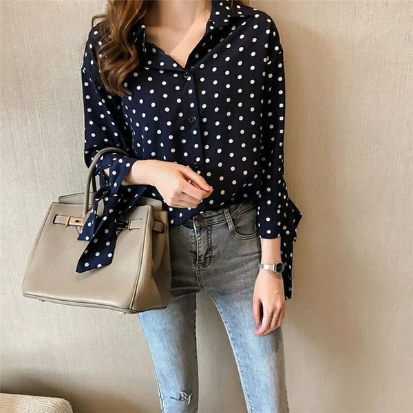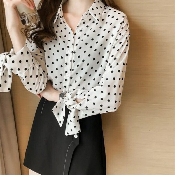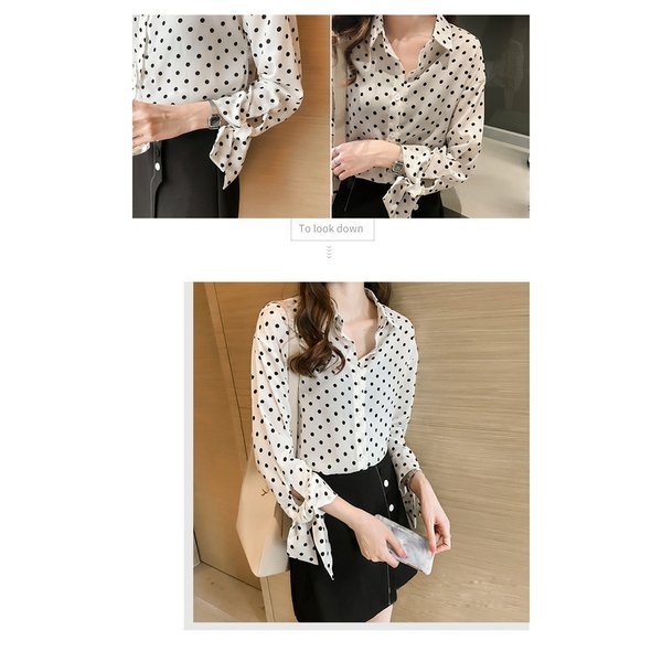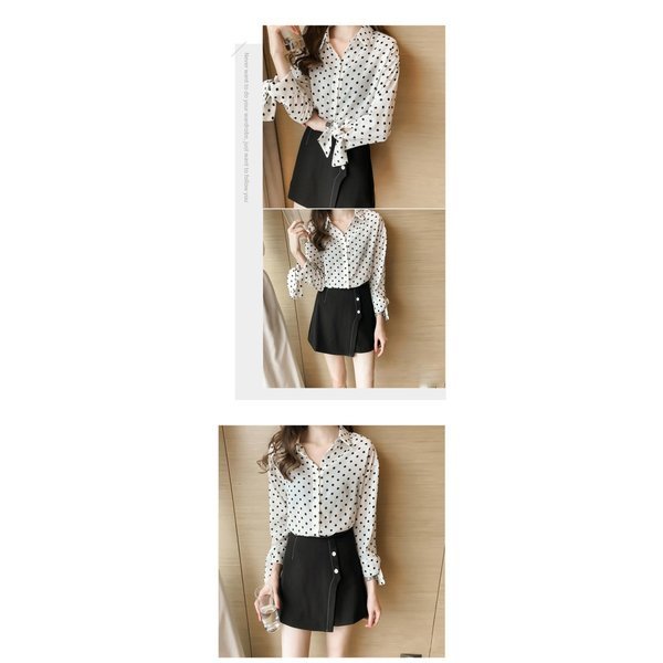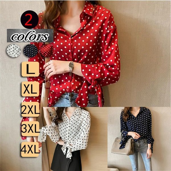 ブラウスシャツブラウス レディース 長袖 シャツ ドットブラウス シフォンシャツ 韓国風大きいサイズ 通勤 O