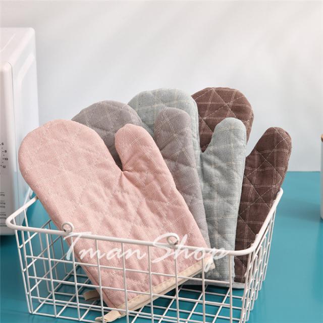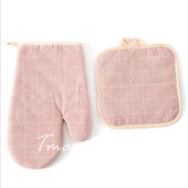 2個セット 鍋つかみ 耐熱ミトン キッチンミトン 両手 綿製品 格柄 断熱 オーブンミトン なべつかみ 長めミトン 厚手 おしゃれ 家庭用 業務用 プレゼント
