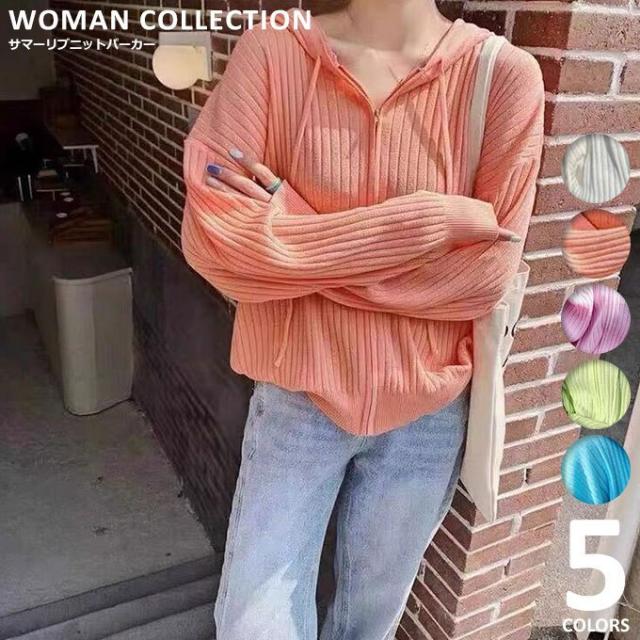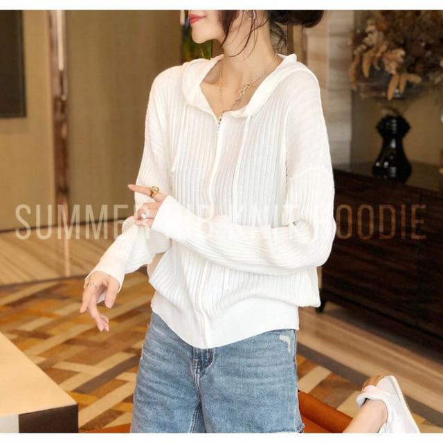 パーカー ジップアップパーカー ルームウェア 薄手 レディース 夏 フード付き 春 可愛い サマーニット ゆうパケット