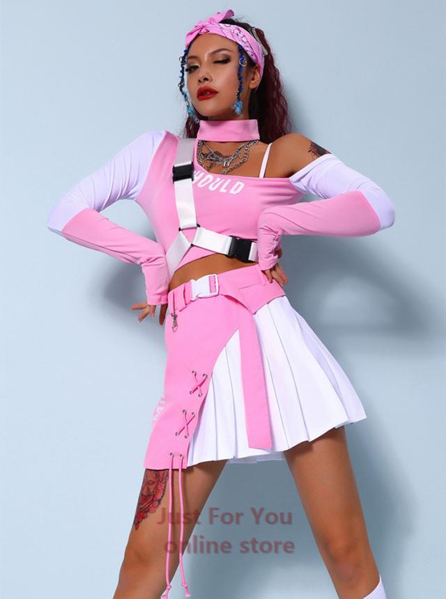 ダンス衣装 レディース ヒップホップ ジャズダンス DS 演出 韓国ファッション ジャズ 大人 ストリート スカート パンツセット ピンク レッスン着