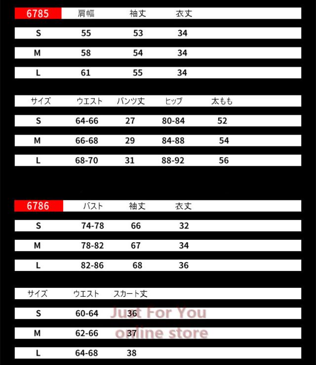 | 色 | 短パン2点セット-6785 スカート2点セット-6786 長ズボン2点セット-6787 |