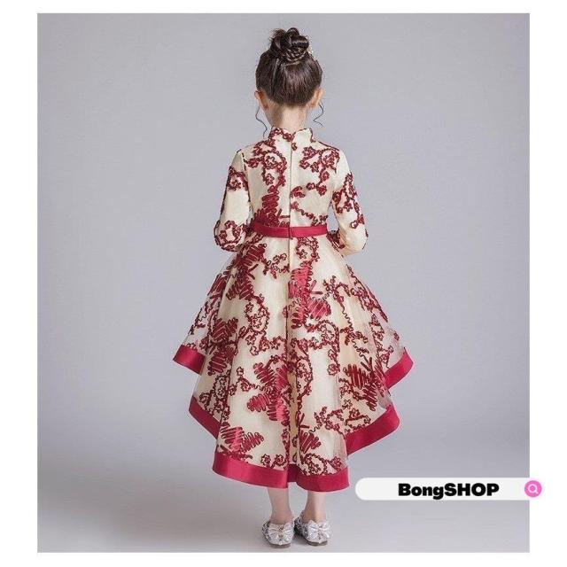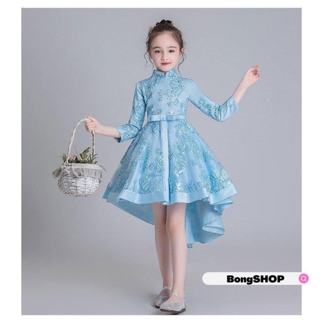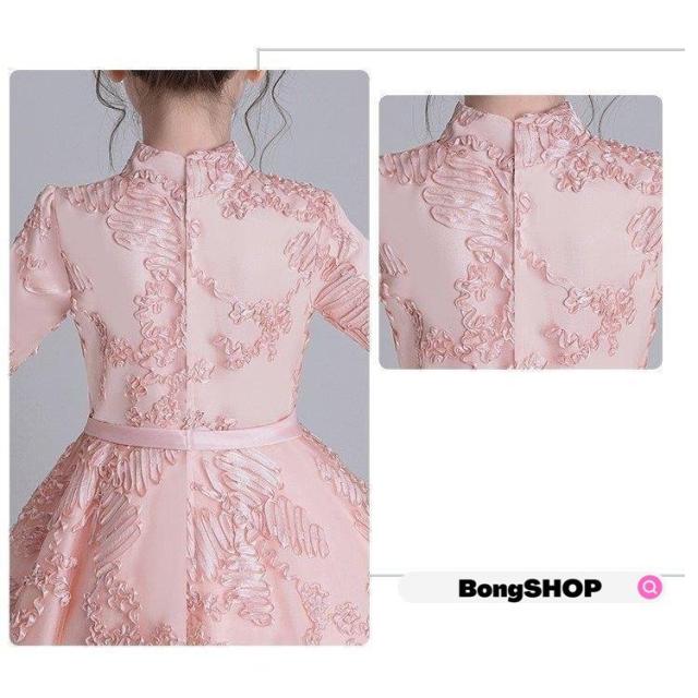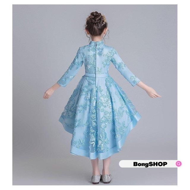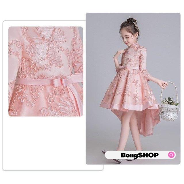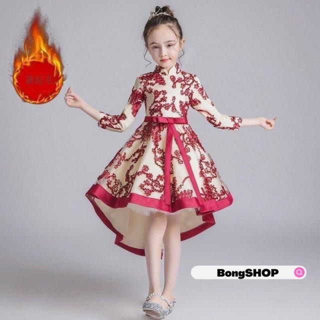 女の子ドレス子供ドレス ピアノ春秋冬膝丈 オープンカラードレス不規則 発表会 ロング 子どもドレス長袖花刺繍ワンピース かわいい 結婚式 演出新作3色