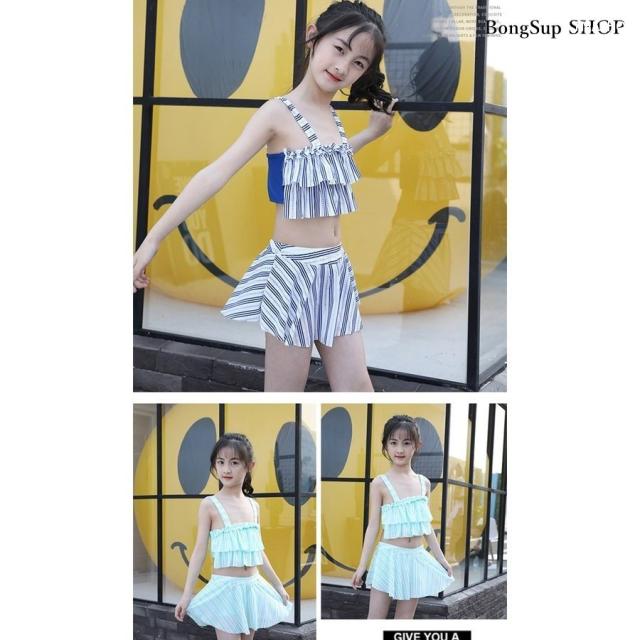 キッズ水着 女児用 女の子 セパレート セット 子供水着 トップス*パンツ ストライプ 110cm 120cm 130cm 140cm 150cm 160cm ネイビー ピンク グリーン レッド