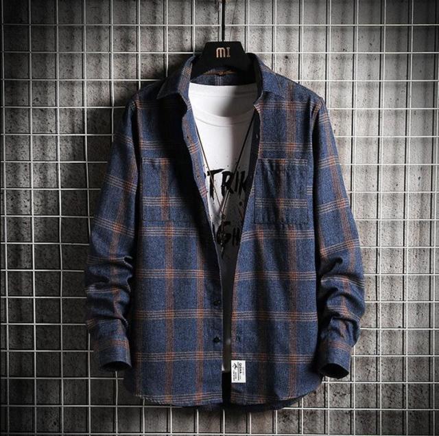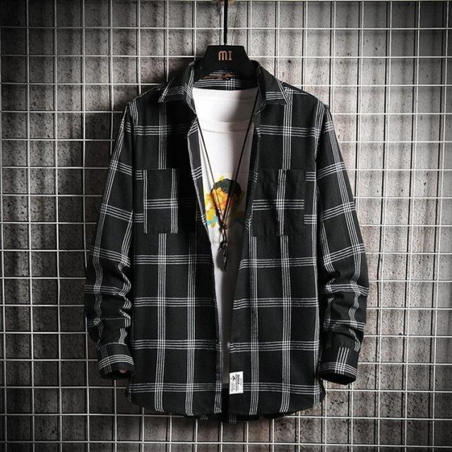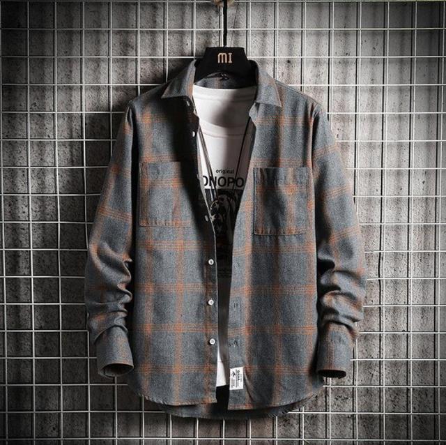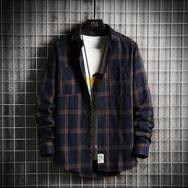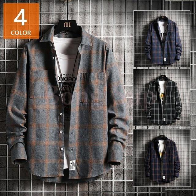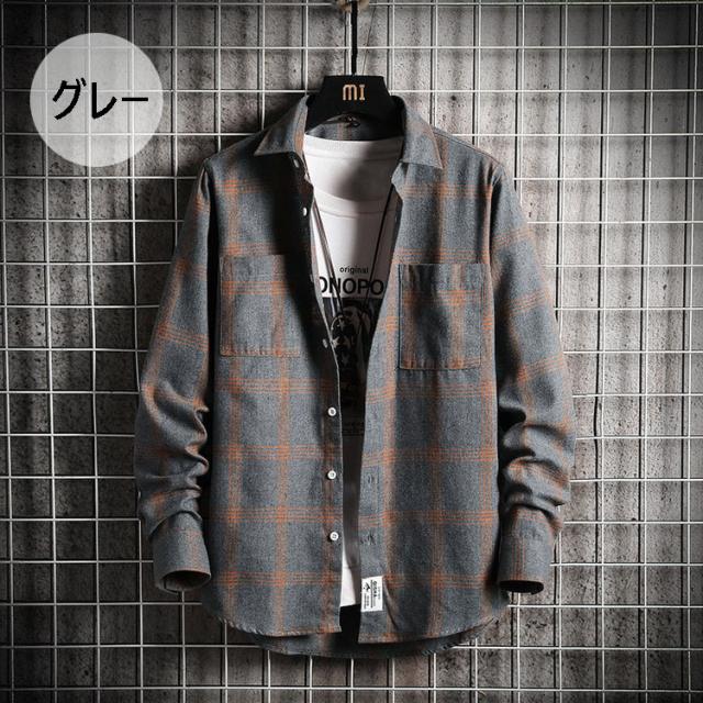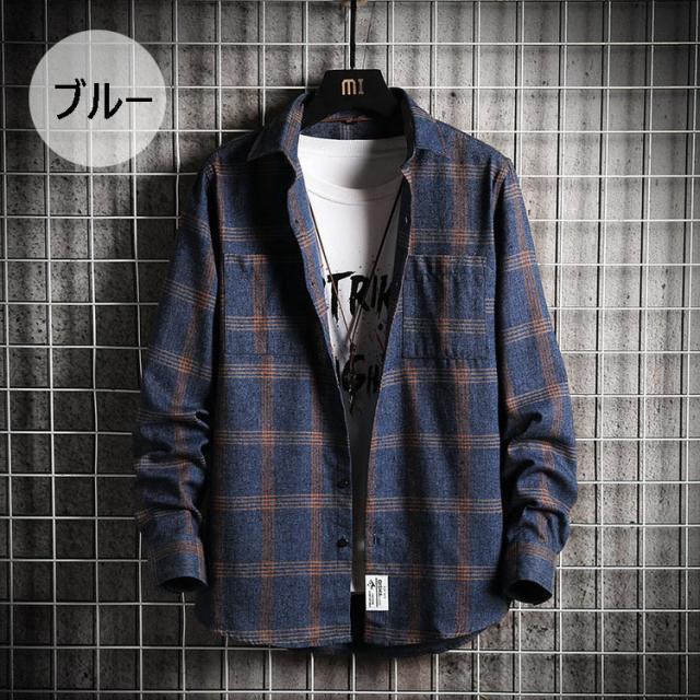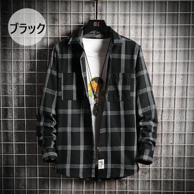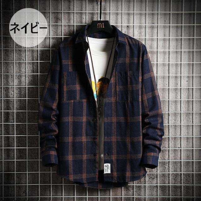 カジュアルシャツ メンズ ネルシャツ チェックシャツ チェック柄 長袖 開襟シャツ シャツ 韓国ファッション 春秋 春服 おしゃれ トップス メンズファッション