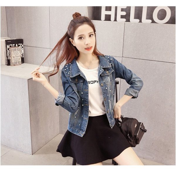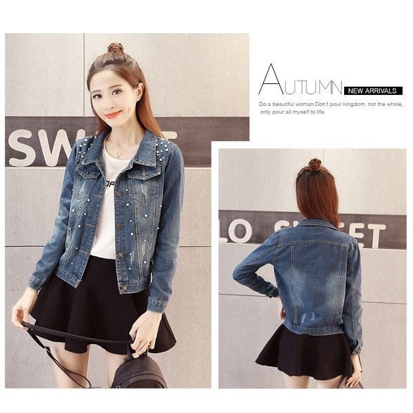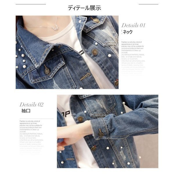 デニムジャケットレディース秋新作デニムジャケットピーコート長袖gジャン 韓国風ビーズショート丈デニムコート大きいサイズ