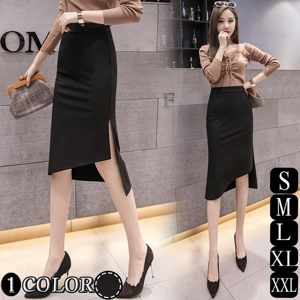 マーメイドスカート タイトスカート レディース 膝下丈 スリット エレガント フェミニン ボトムス ハイウエスト