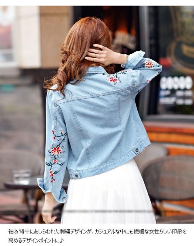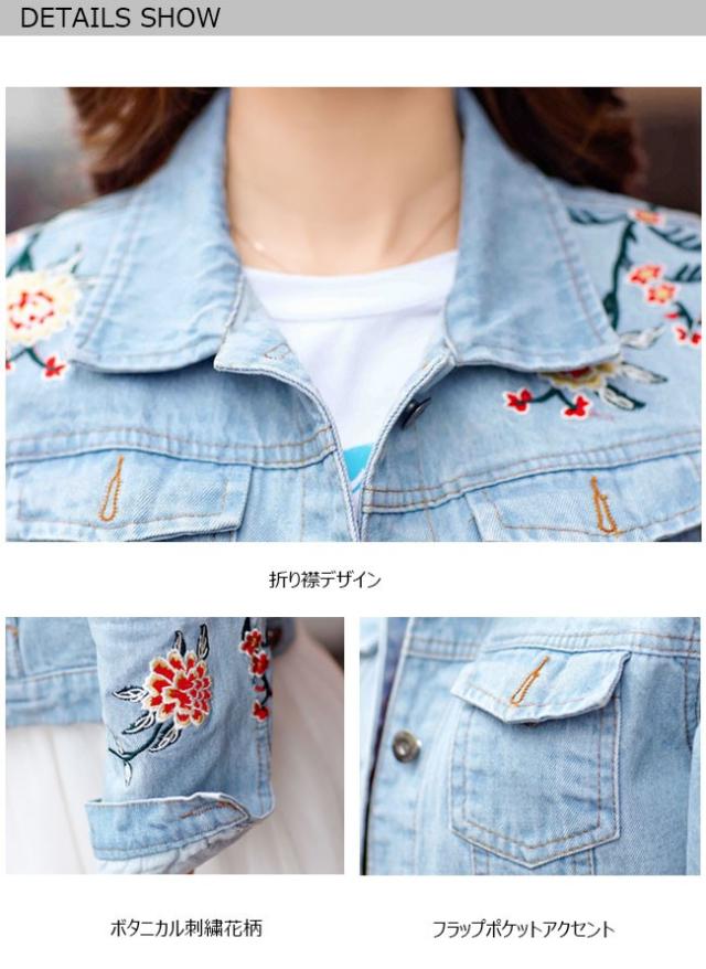 刺繍デニムジャケット 刺繍ジャケット ジージャン Gジャン レディース ブルゾン 長袖 ブレザー アウター 羽織 無地 秋新作