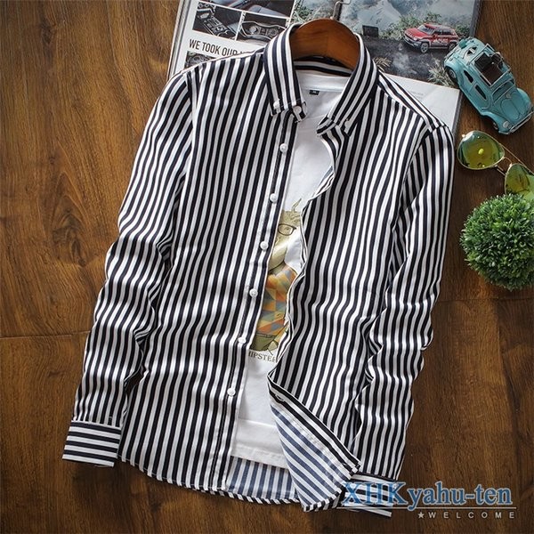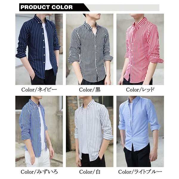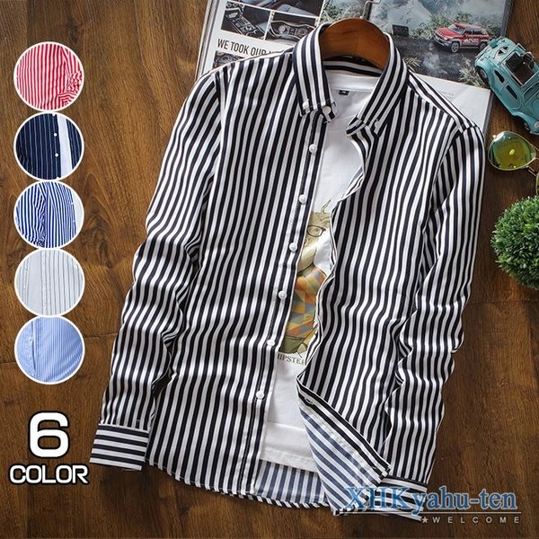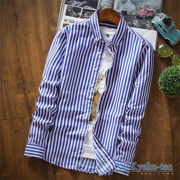 ボタンダウンシャツ メンズ ストライプシャツ カジュアルシャツ 春物 長袖シャツ 細身 シャツ おしゃれ