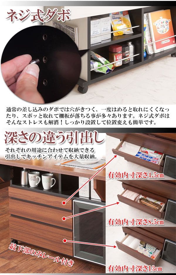 ■耐荷重量/天板(本体部):(約)20kg、天板(両バタ部):(約)10kg、可動棚:(約)5kg