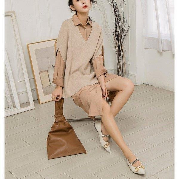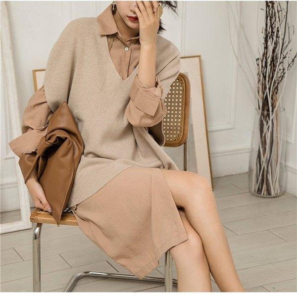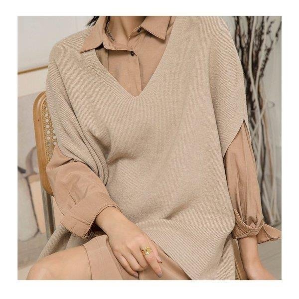ニットベスト レディース 大きいサイズ ニット 40代 トップス ベスト Vネック ノースリーブ ロング丈 シンプル 無地 カジュアル レイヤード 重ね着 上品