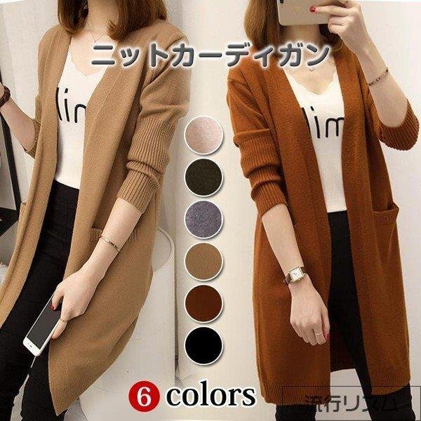 ロングカーディガン レディース ニット 長袖 コート トップス 上着 ニットウェア ポケット 暖か 毛糸 アウター ゆったり