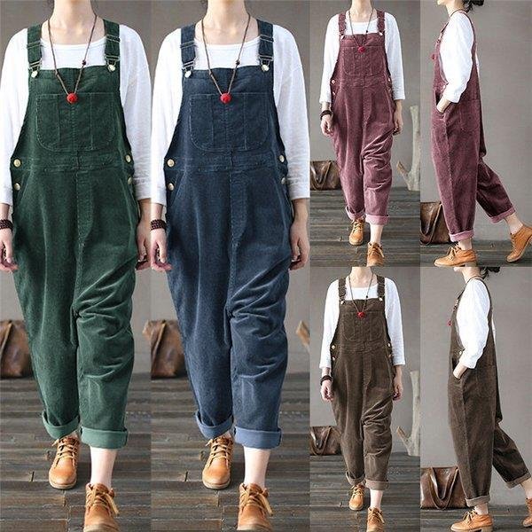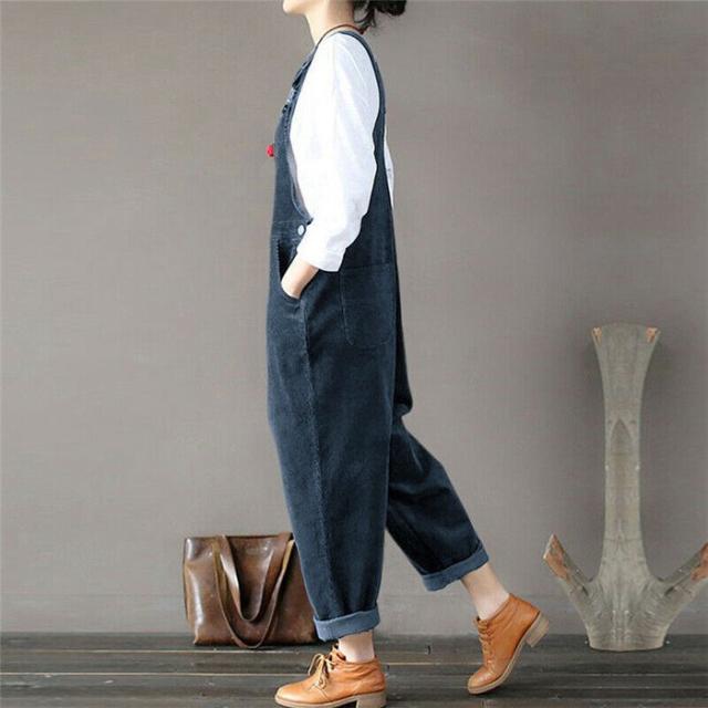サロペットパンツ サロペット オールインワン レディース コーデュロイ ロングパンツ パンツドレス オーバーオール ワイドパンツ 着痩せ OL 体型カバー 秋 冬