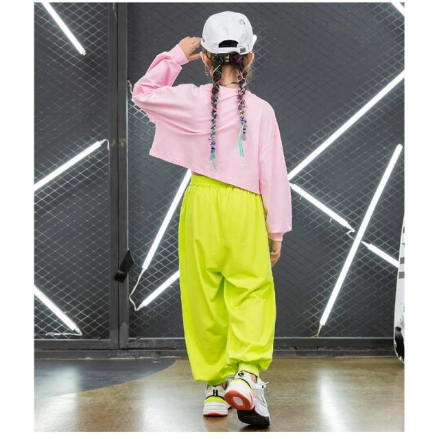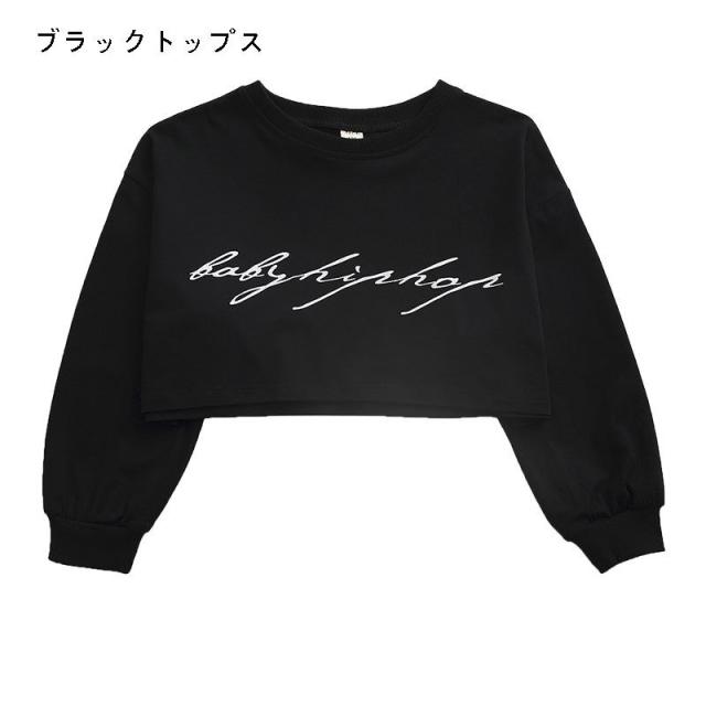 キッズ ダンス衣装 セットアップ ヒップホップ 子供 トップス パンツ 長ズボン 長袖 へそ出し 女の子 ジャズダンス 練習着 発表会 チアガール