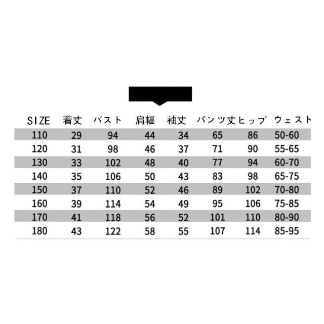 | サイズについての説明 | サイズ: 110-120-130-140-150-160-170-180cm 【110】参考身長100-110cm 【120】参考身長110-120cm 【130】参考身長120-130cm 【140】参考身長130-140cm 【150】参考身長140-150cm 【160】参考身長150-160cm 【170】参考身長160-170cm 【180】参考身長170-180cm |