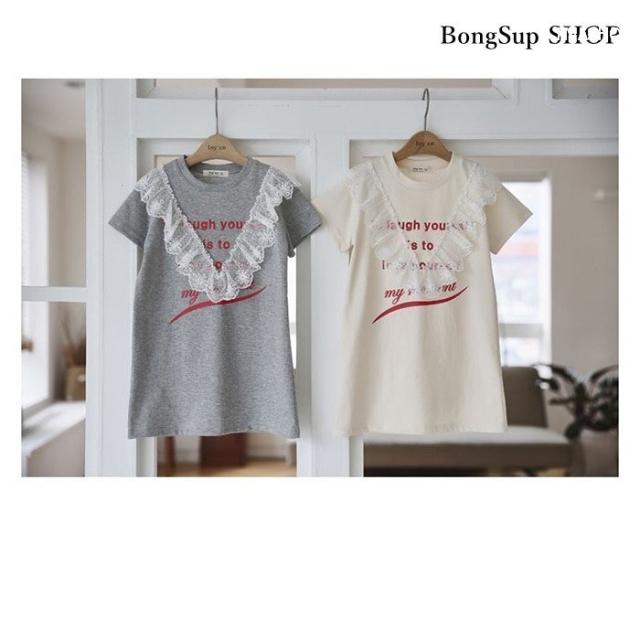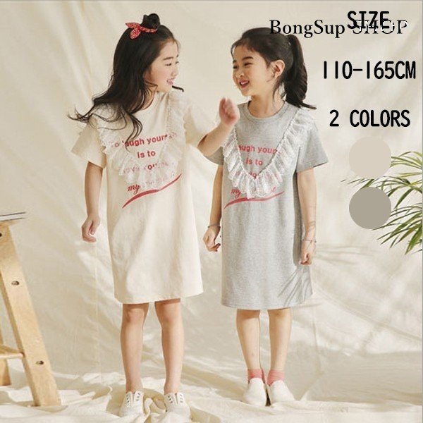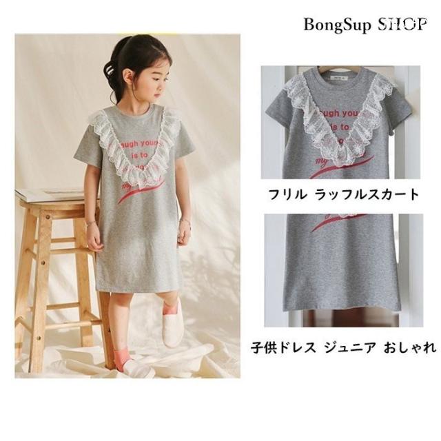 子供服 ワンピース 春夏 女の子 半袖 膝丈ワンピース フリル ラッフルスカート レース チュニック プリント 韓国風 カジュアル 新品 110-165cm