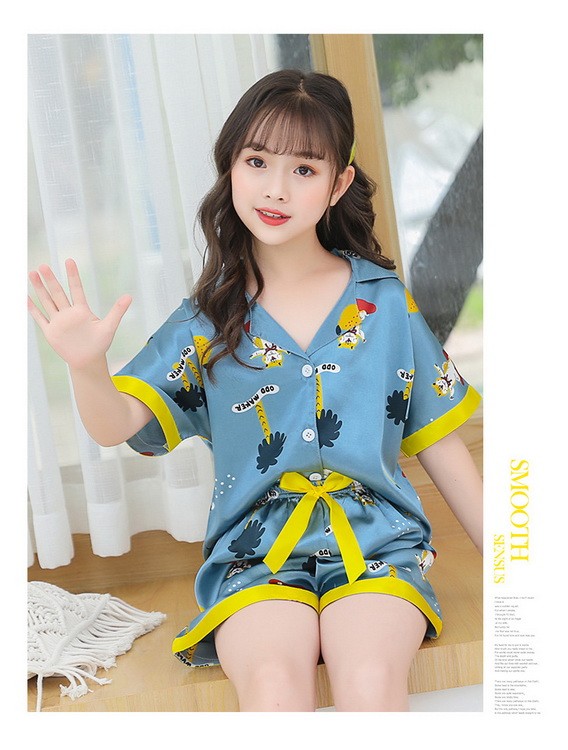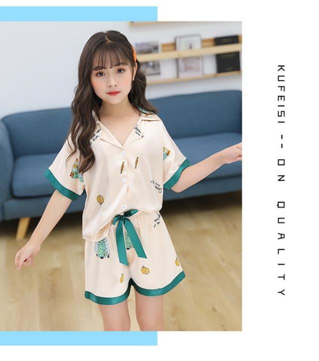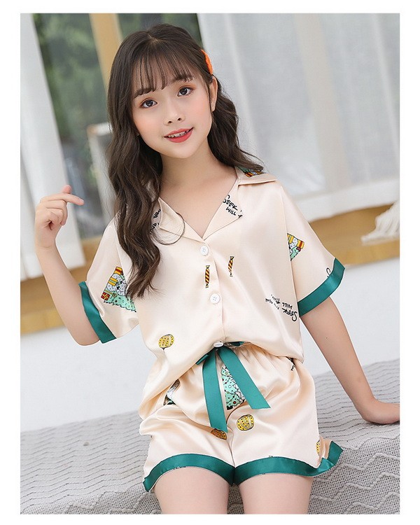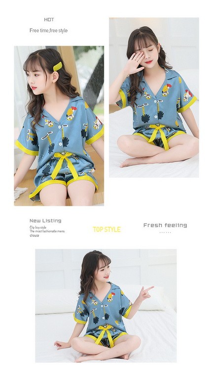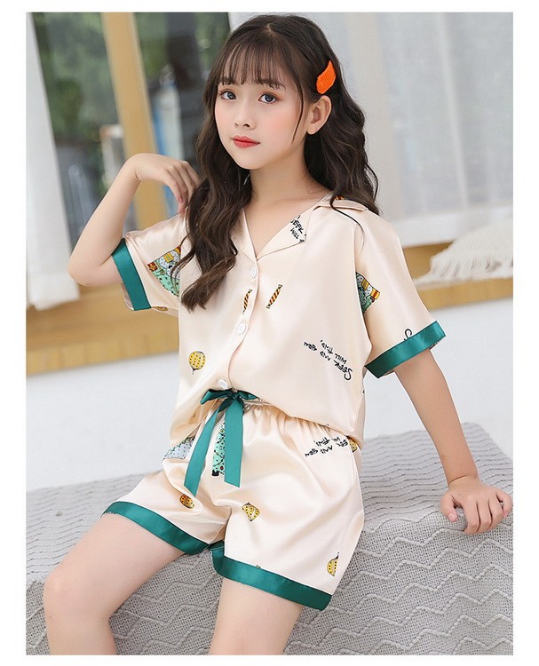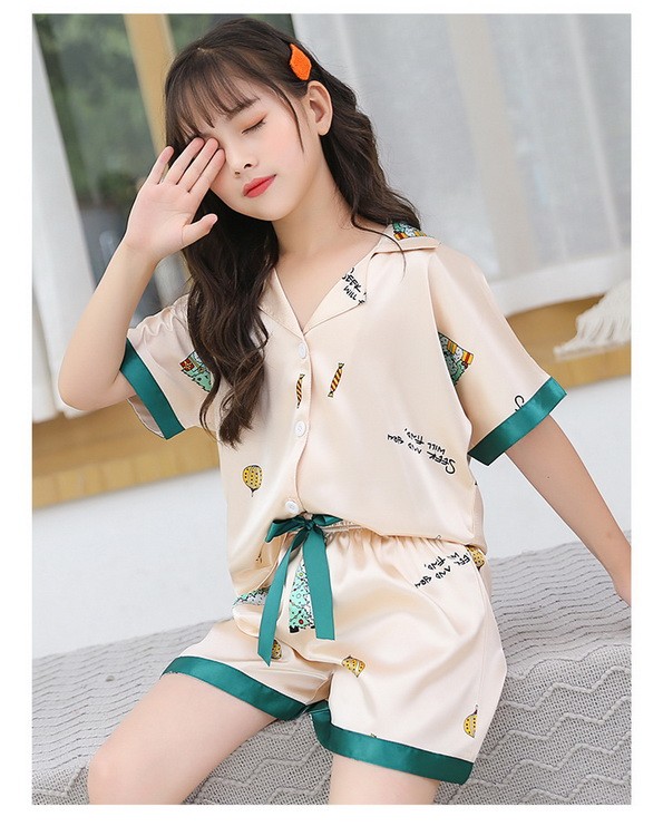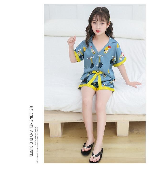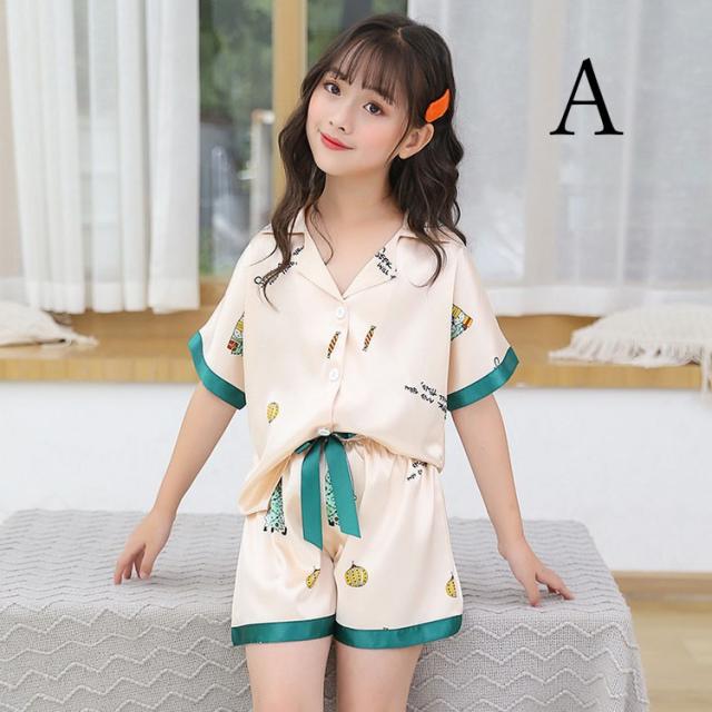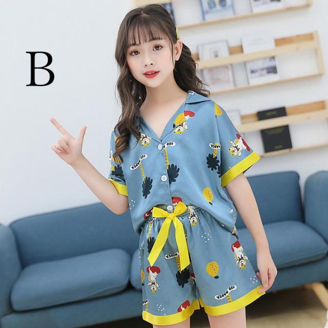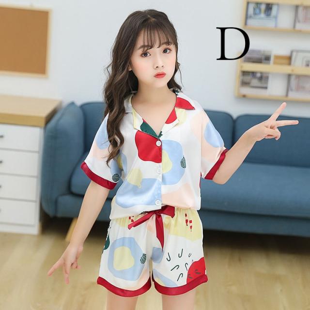 子供パジャマ 半袖 キッズパジャマ 女の子 おしゃれ 前開きルームウェア 前ボタン シルク風こどもパジャマ 部屋着 寝巻き 110/120/130/140/150/160/170cm