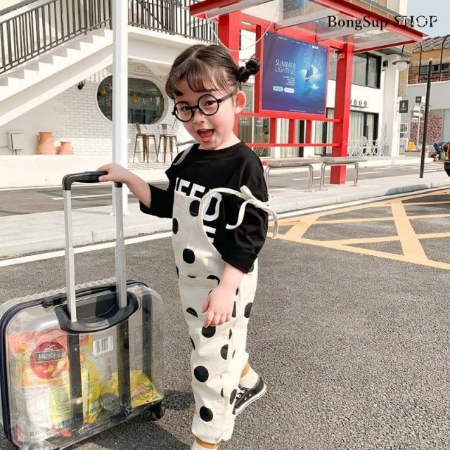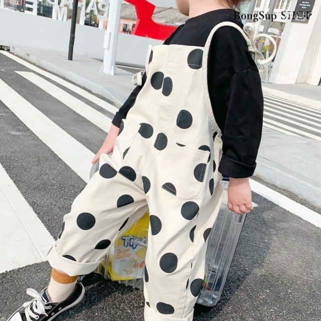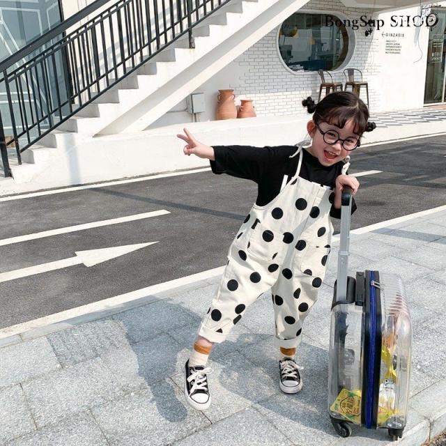 韓国子供服 ハーフ丈コットンオーバーオール サロペット ナチュラル 韓国 子供服 韓国こども服 水玉柄 女の子 キッズ くすみカラー 80cm-130cm