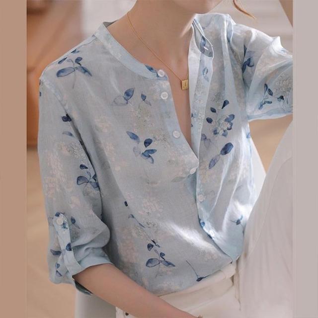 ブラウス レディース きれいめ 40代 春夏 上品 vネックブラウス 花柄シャツ トップス 半袖 韓国風 トップス 大人 上品 通勤 着痩せ 30代 50代