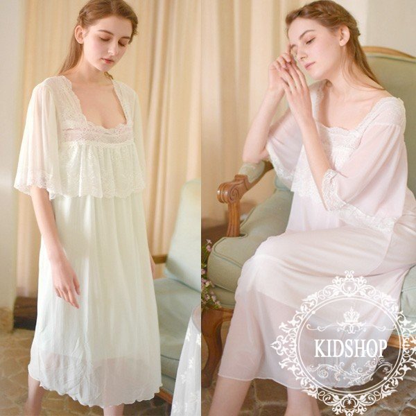 ルームウェア ワンピース レディース 春夏 ロング ネグリジェ 姫 半袖 綿 無地 レース ルームウェア ガウン ナイトウェア 女性 可愛い 部屋着 寝巻きワンピース