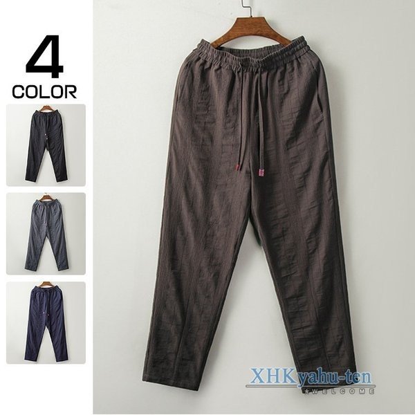 麻ズボン メンズ 綿麻パンツ テーパードパンツ リネンパンツ ボトムス チノパン ジャカード イージーパンツ