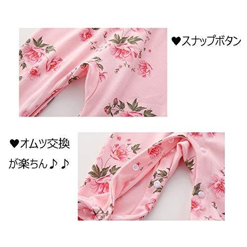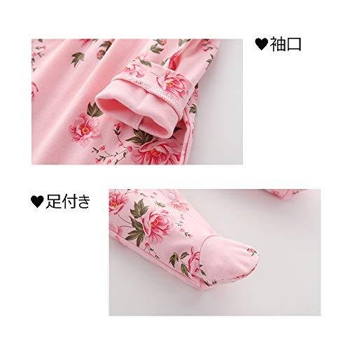 ベビー服 長袖ロンパース 新生児 足つき 襟 帽子付き 2点セット 春秋 カバーオール 赤ちゃん 花柄 女の子