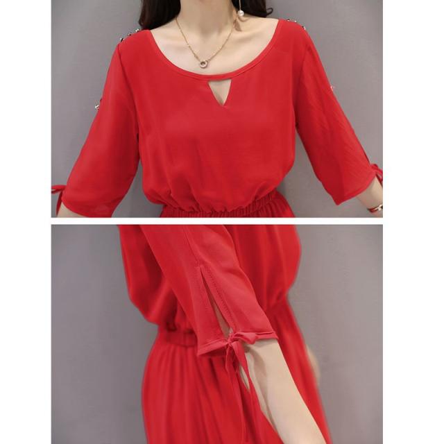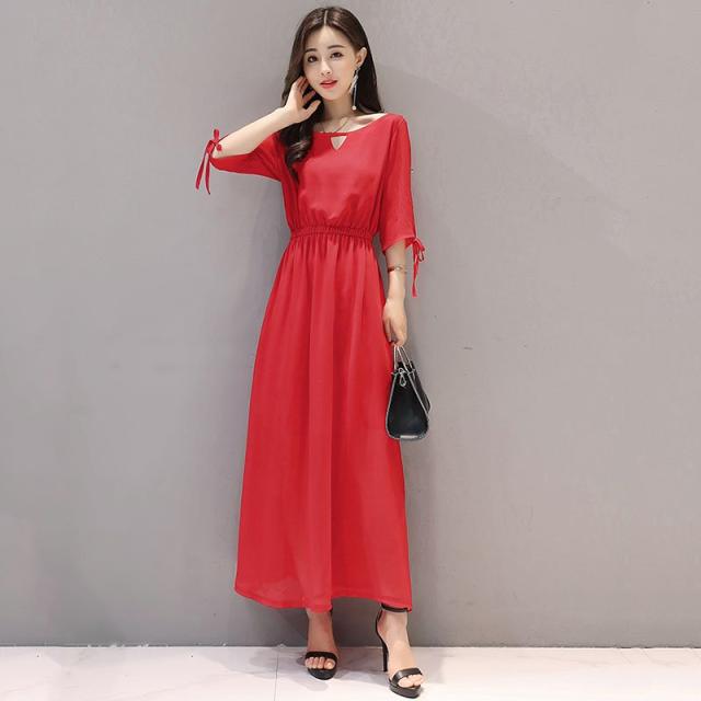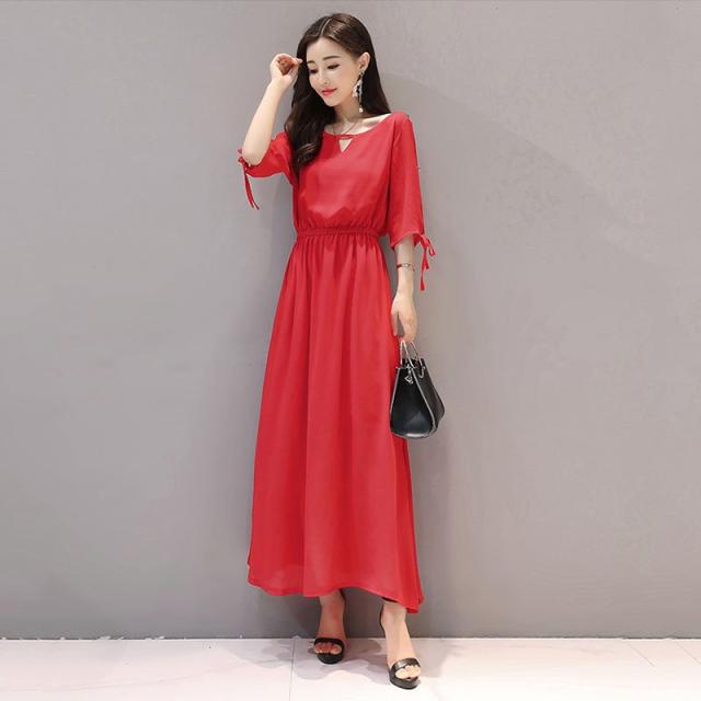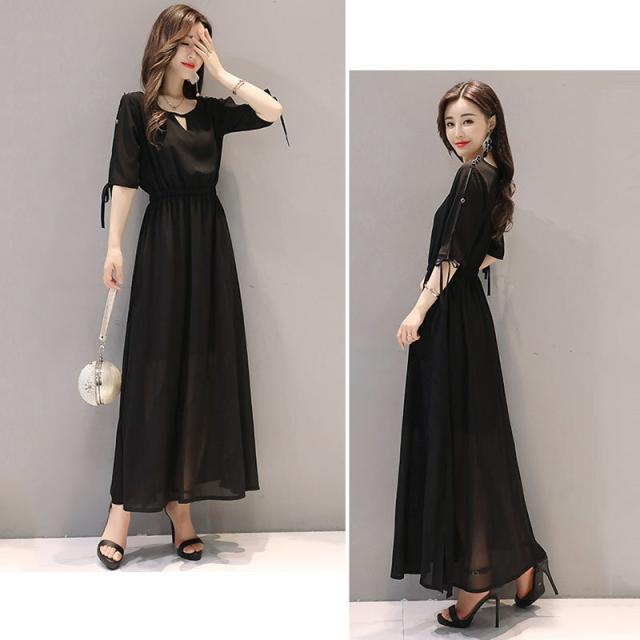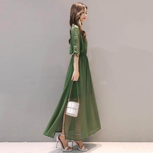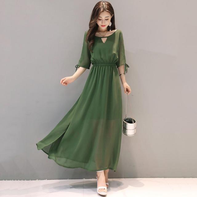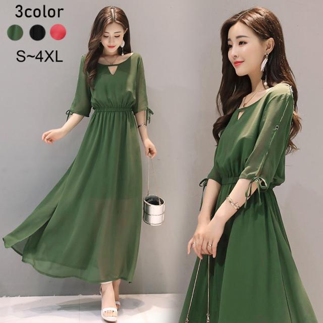 ワンピース レディース 40代 きれいめ 夏 マキシワンピース 五分袖 シフォン 無地 パーティードレス 韓国風 オシャレ ゆったり 通勤 大人 OL 上品 着痩せ 新品