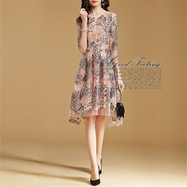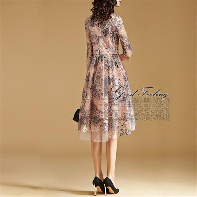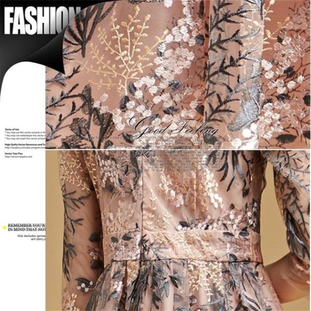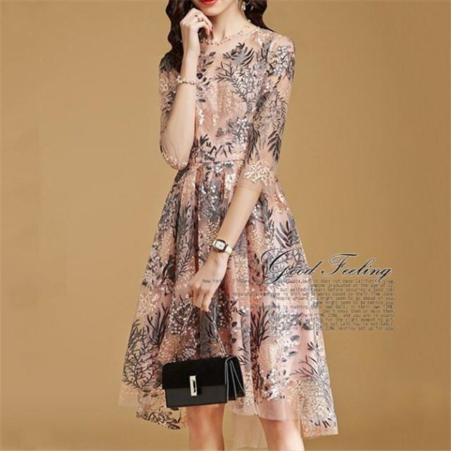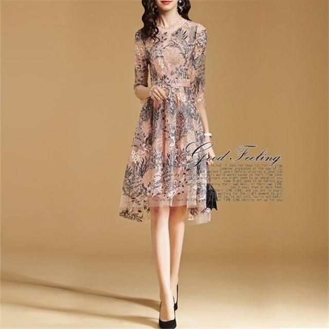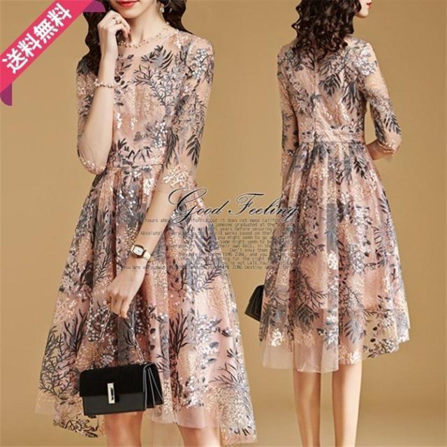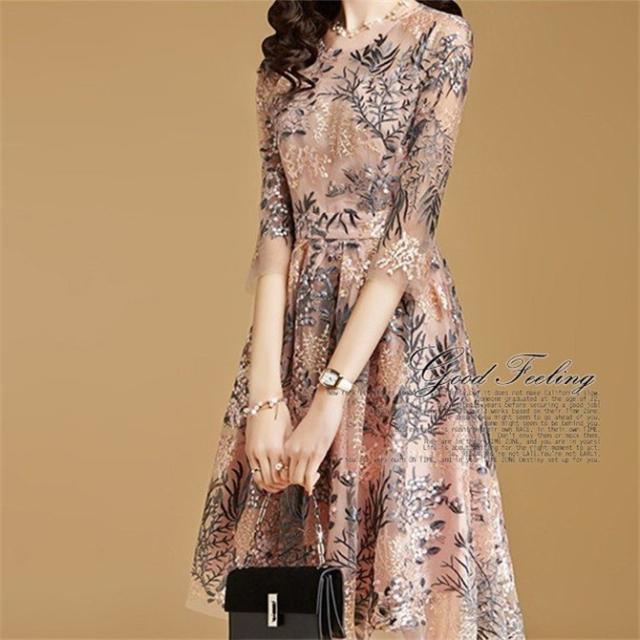 パーティードレス 結婚式 40代 ロング 袖あり 五分袖 韓国風 大きいサイズ フォーマルドレス レース刺繍 お呼ばれ 二次会 披露宴 謝恩会 上品 着痩せ