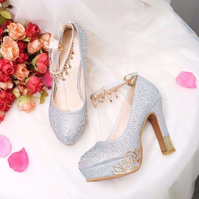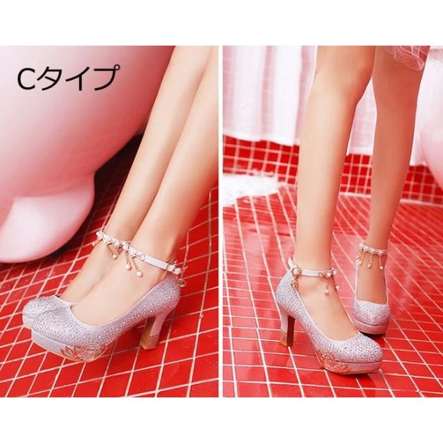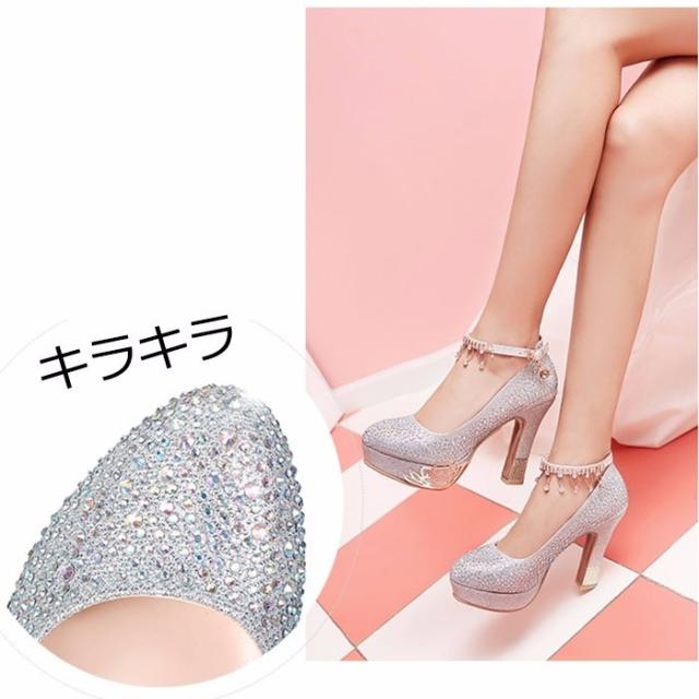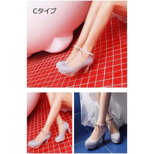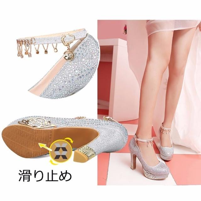 美脚パンプス ブライダルシューズ 大きいサイズ ウェディング靴 ハイヒール ローヒール 結婚式 発表会 2次会 シルバー