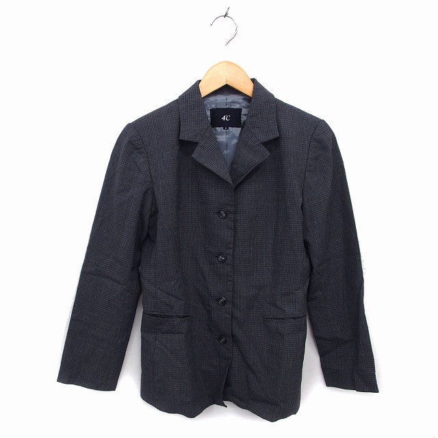 【中古】ヨンドシー 4℃ ジャケット アウター テーラード ウール 背抜き チェック S チャコールグレー /NT16