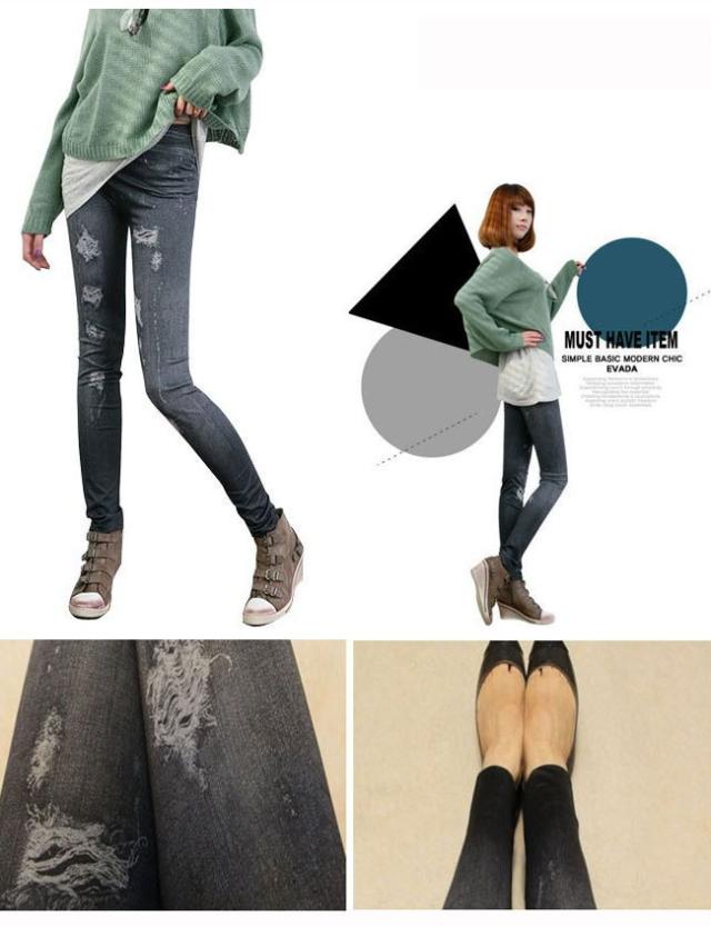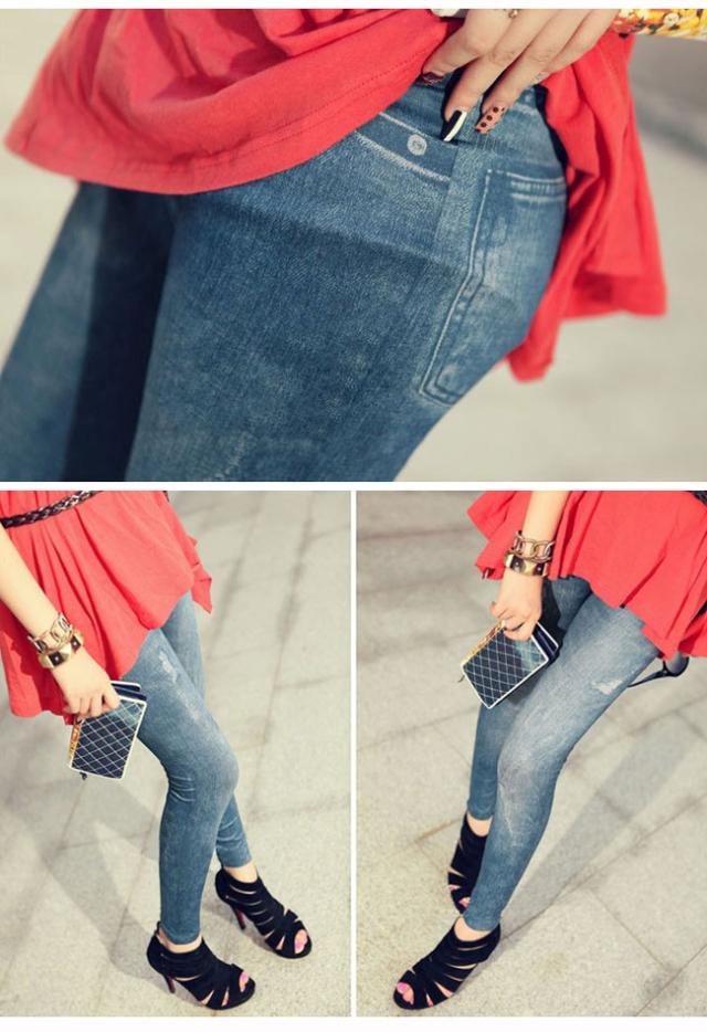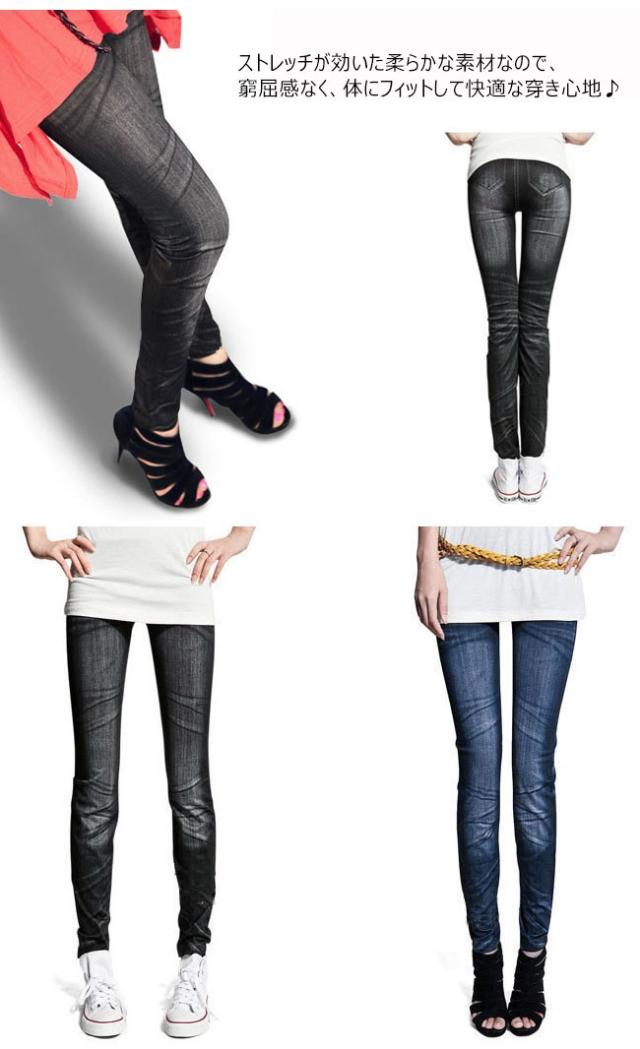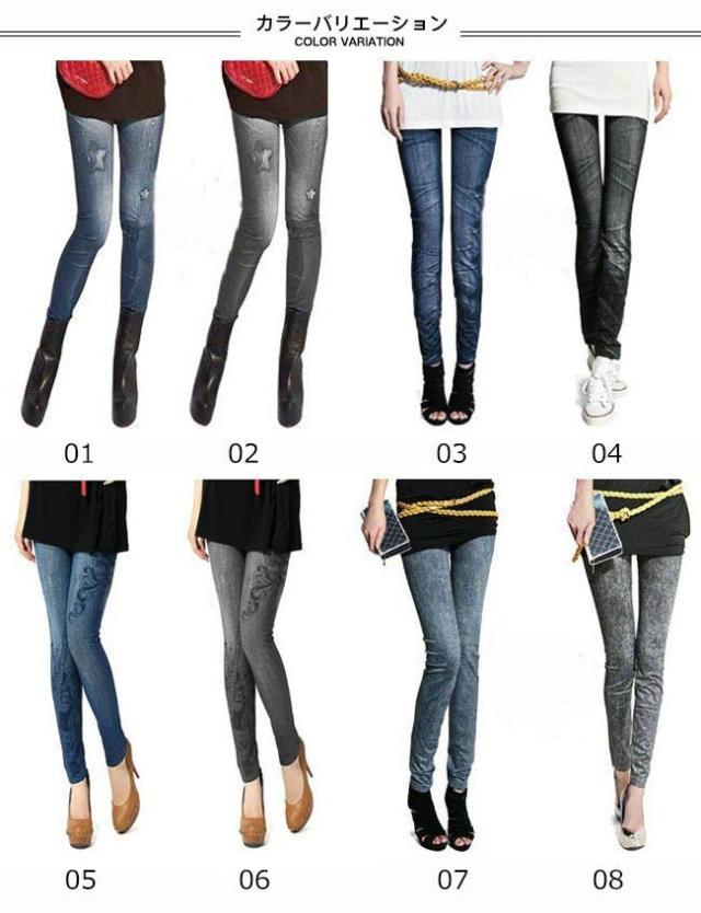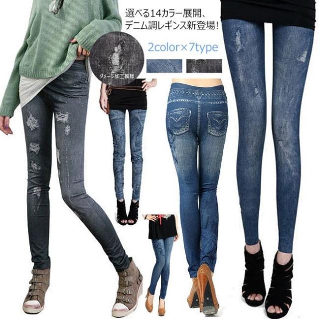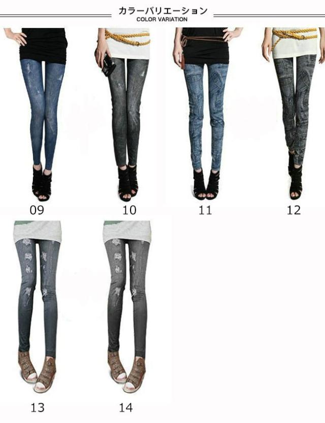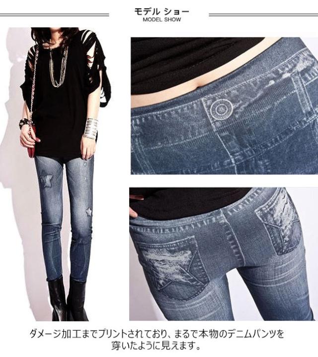 デニム調レギンス 夏 レディース 9分丈 花柄 デニム調 ダメージ加工模様 ジーンズ風 ストレッチ ルームウェア 冷え対策 冷房対策 ボトムス 春 秋
