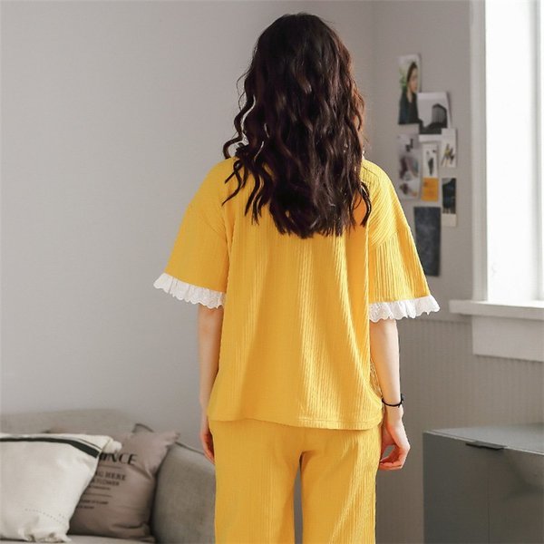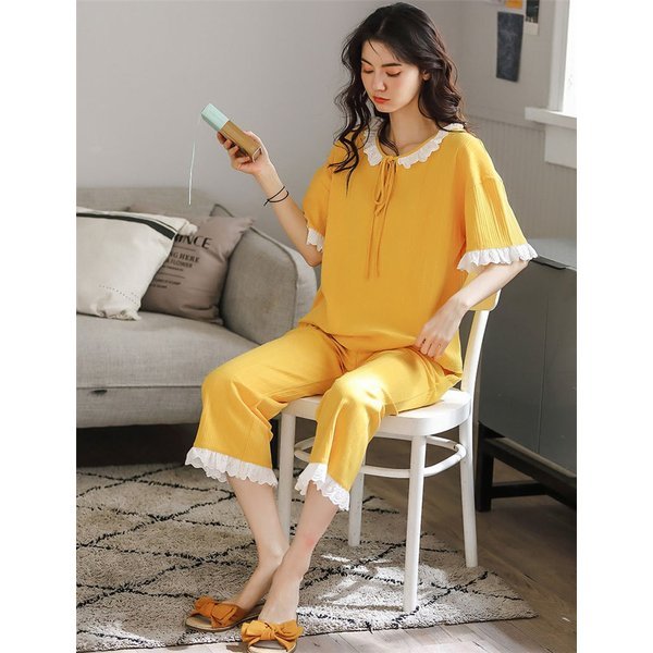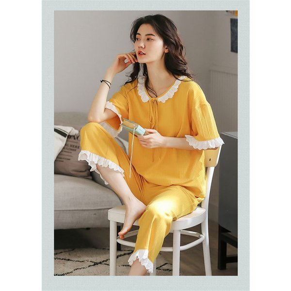 【セール】パジャマ レディース 春夏 半袖 綿素材 ルームウェア 2点セット Tシャツ 七分丈パンツ 薄手 姫系 薄手 寝巻き 部屋着 快
