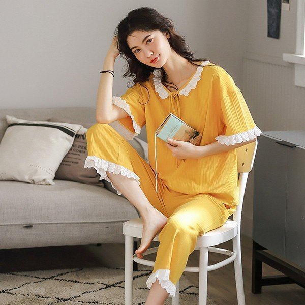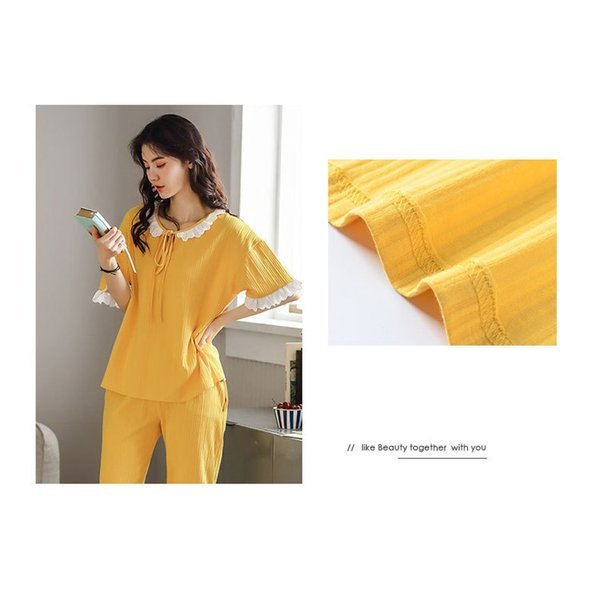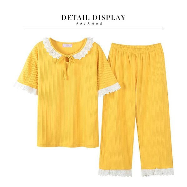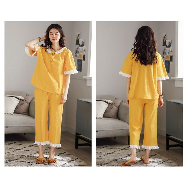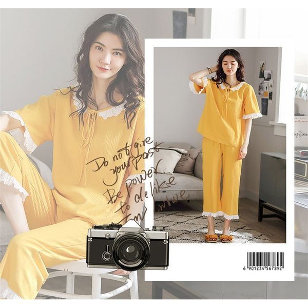 【セール】パジャマ レディース 春夏 半袖 綿素材 ルームウェア 2点セット Tシャツ 七分丈パンツ 薄手 姫系 薄手 寝巻き 部屋着 快