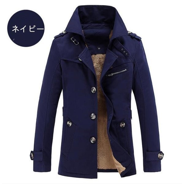 トレンチコートメンズミドル ブルゾンコート 厚ボアアウター ファー付き厚手ジャケット ショートコート 裏起毛 スリム冬