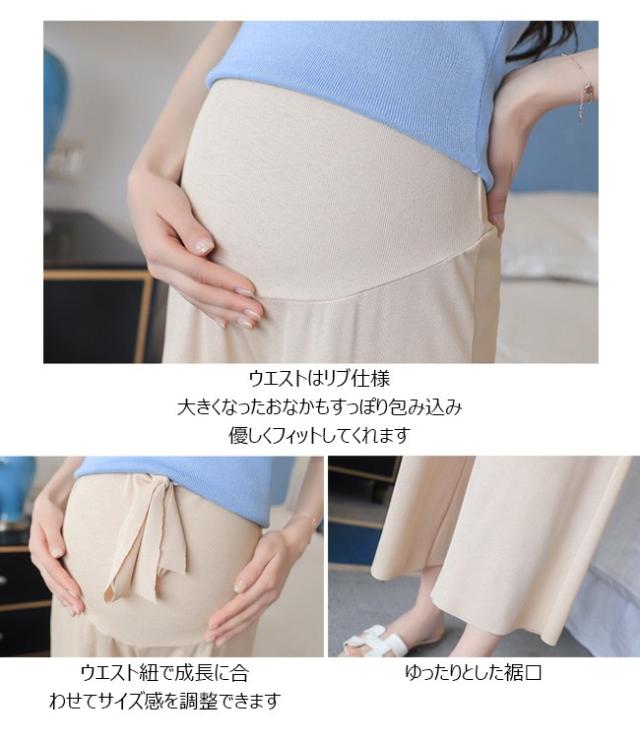 マタニティガウチョパンツ レディース 妊婦 妊娠 ワイドパンツ 9分丈 ゆったり ボトムス 春 夏 秋