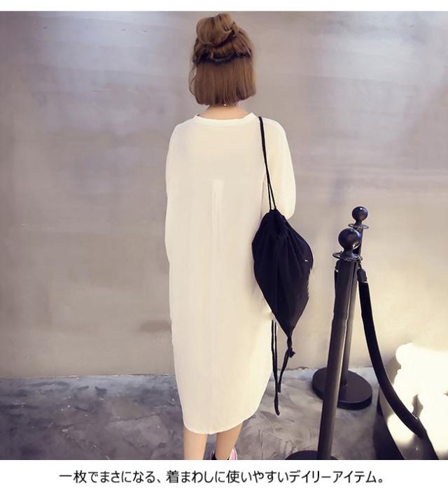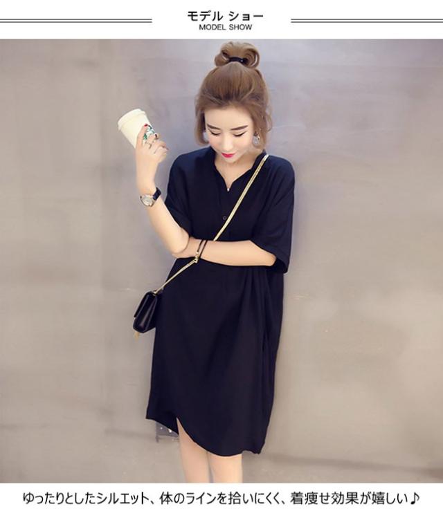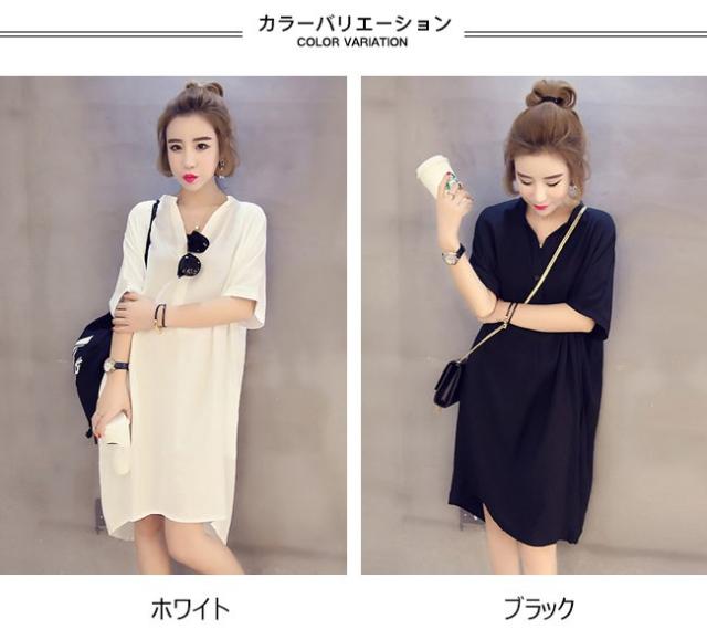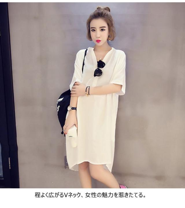 ワンピース レディース 5分袖 膝丈 無地 Vネック ゆったり トップス シャツワンピ Tシャツ 春 夏