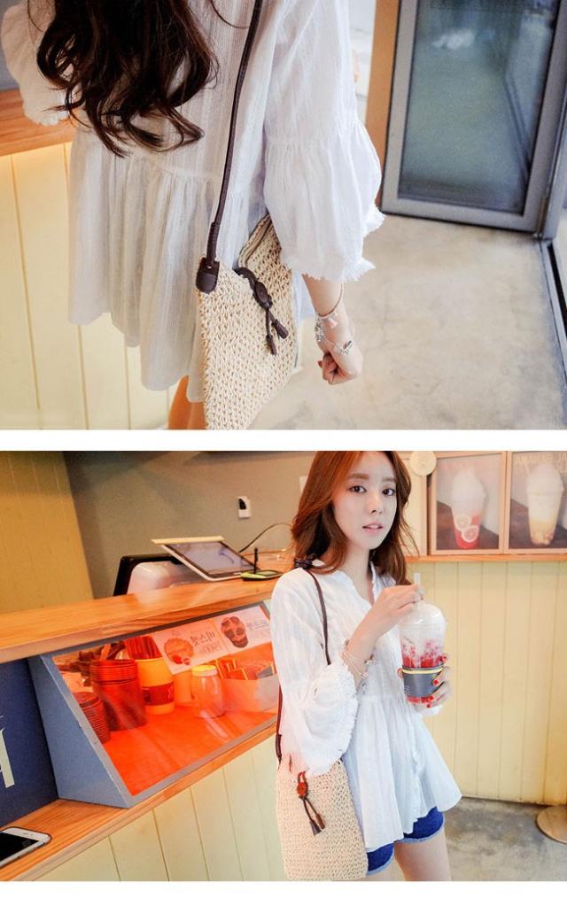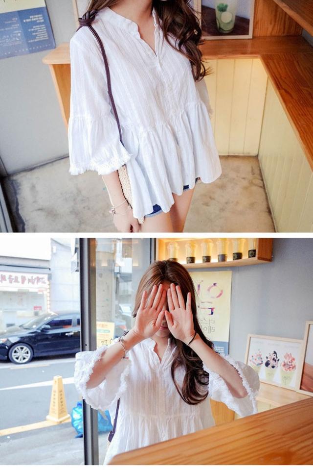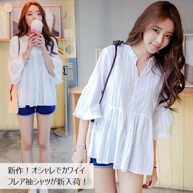スキッパーシャツ 袖フリンジ フレアスリーブ レースチュニック ボヘミアン レディース トップス ブラウス レース 2020春新作