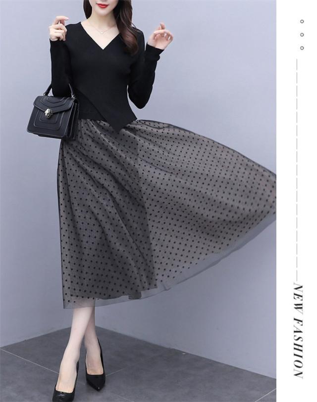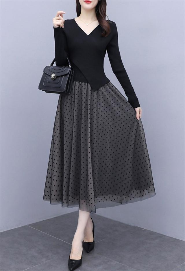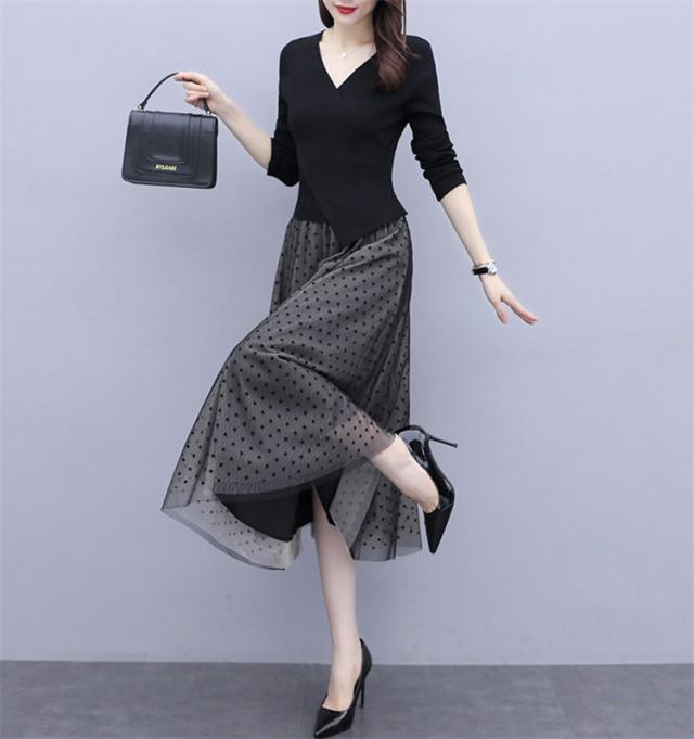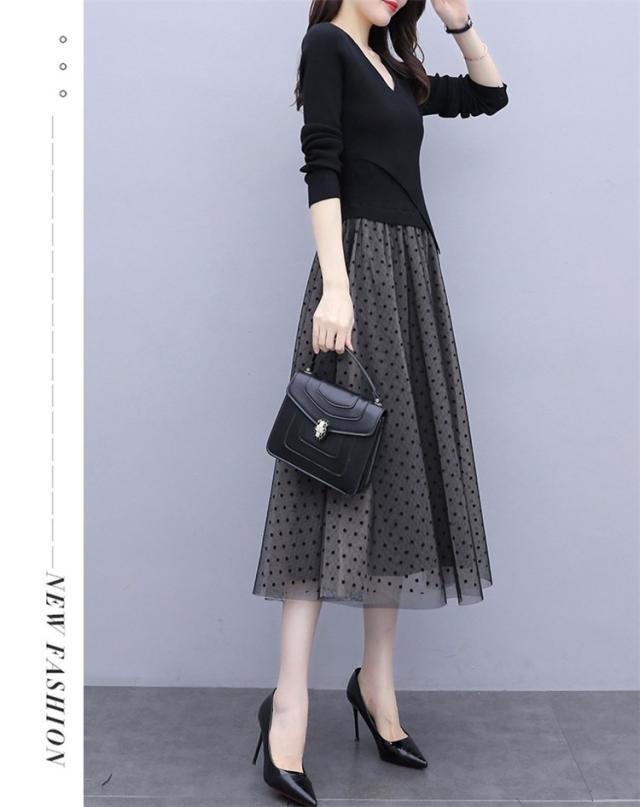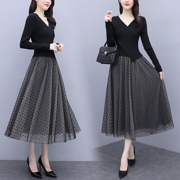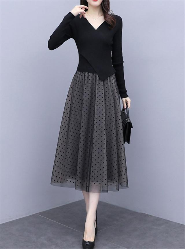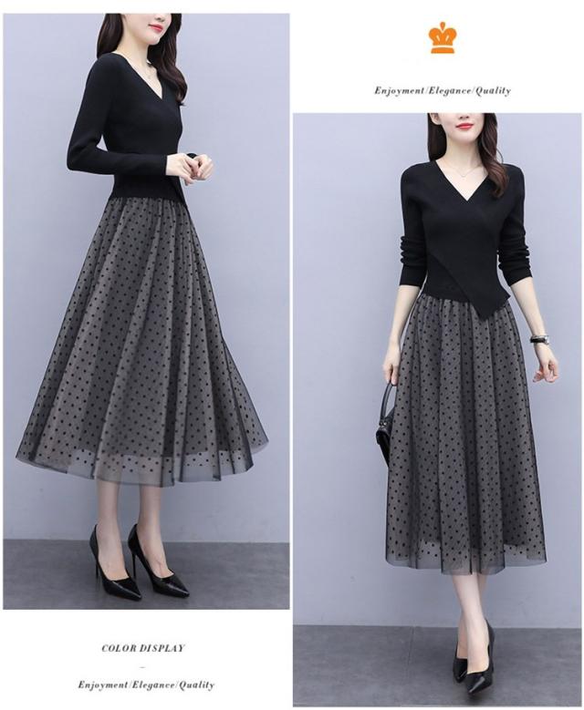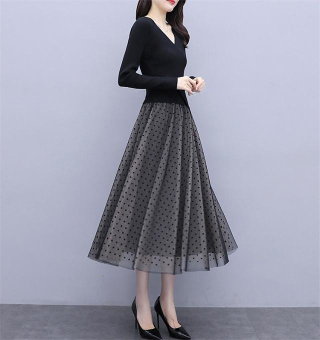 ワンピース レディース 40代 20代 春秋 長袖 きれいめ 上品 マキシワンピース チュール ドット柄 大きいサイズ パーティードレス おしゃれ 韓国風 着痩せ 通勤