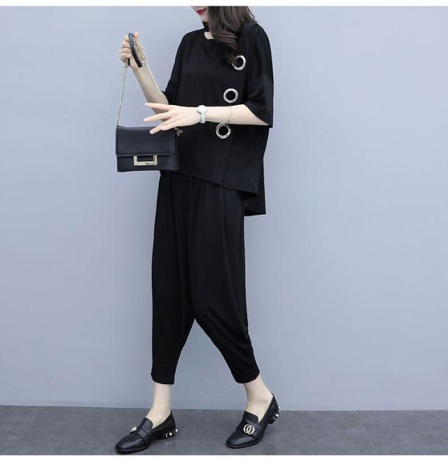 ジャージ セットアップ レディース 春 夏 40代 きれいめ 上下セット Tシャツ 半袖 九分丈パンツ 運動服 部屋着 韓国風 カジュアル お洒落 着痩せ 新品