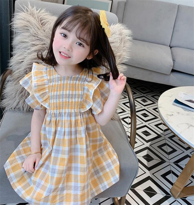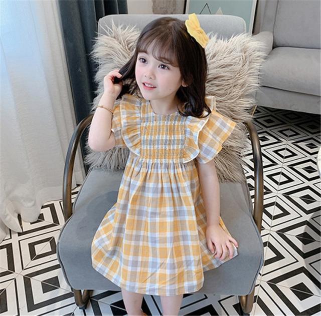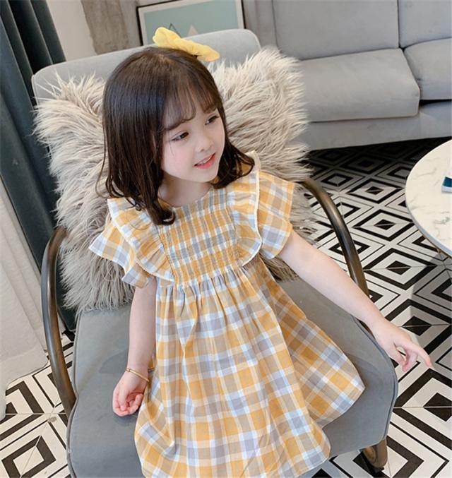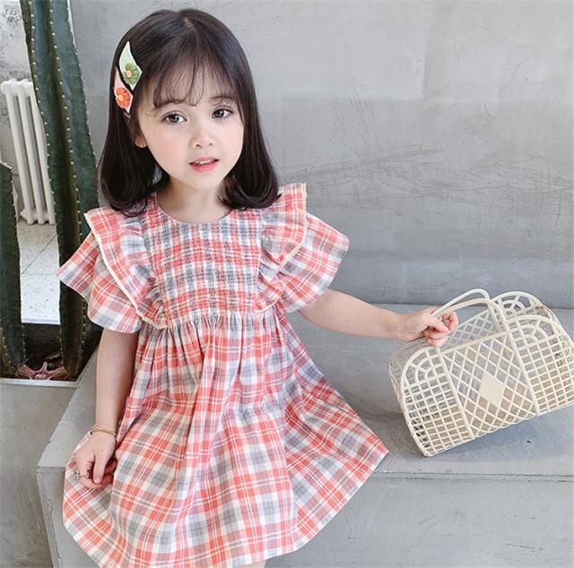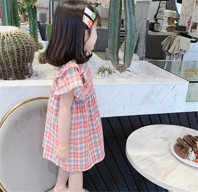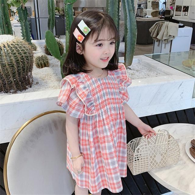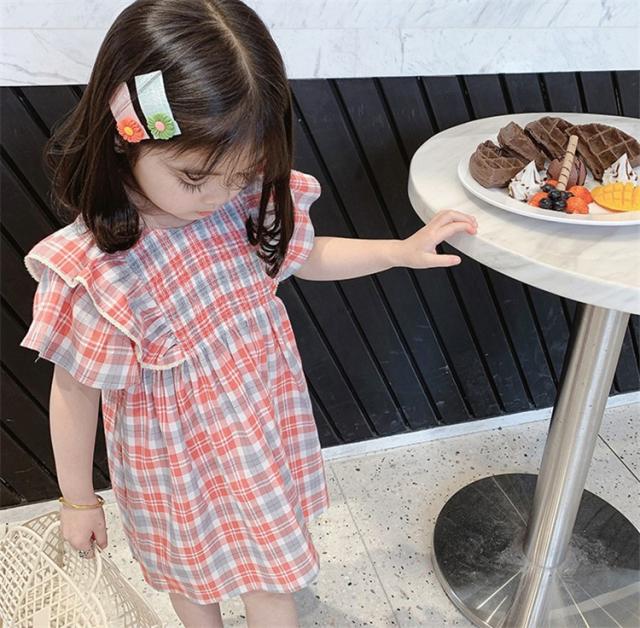 ワンピース キッズ 子供服 女の子 夏 キッズワンピース 半袖ワンピース フリル チェック柄 子供ドレス ベビー服 お姫様 おしゃれ 可愛い カジュアル 新品 90cm