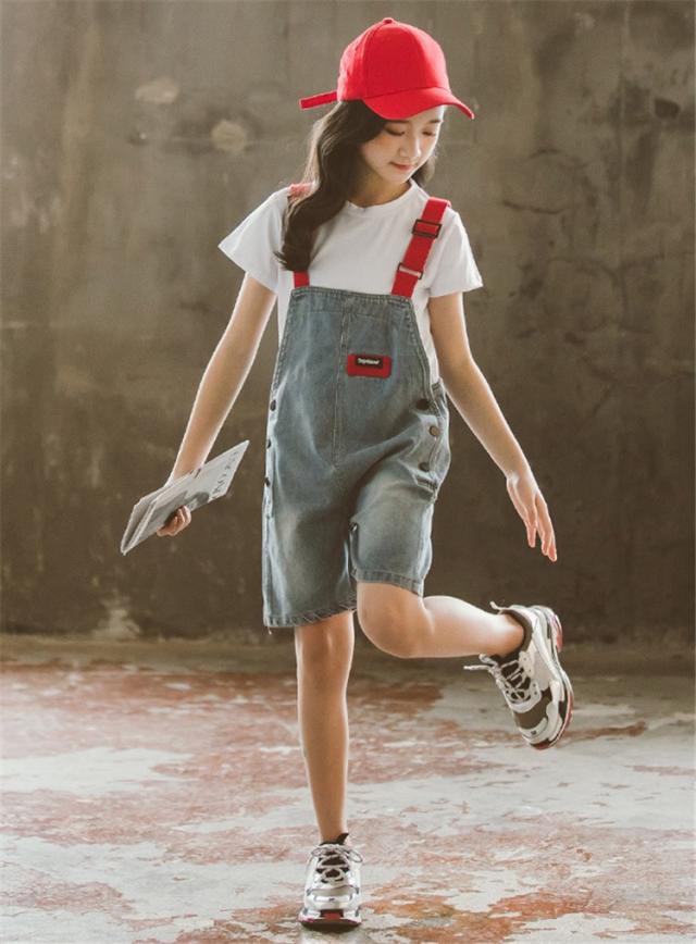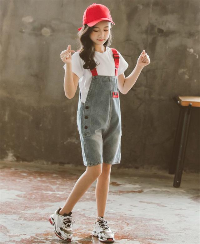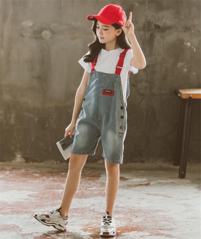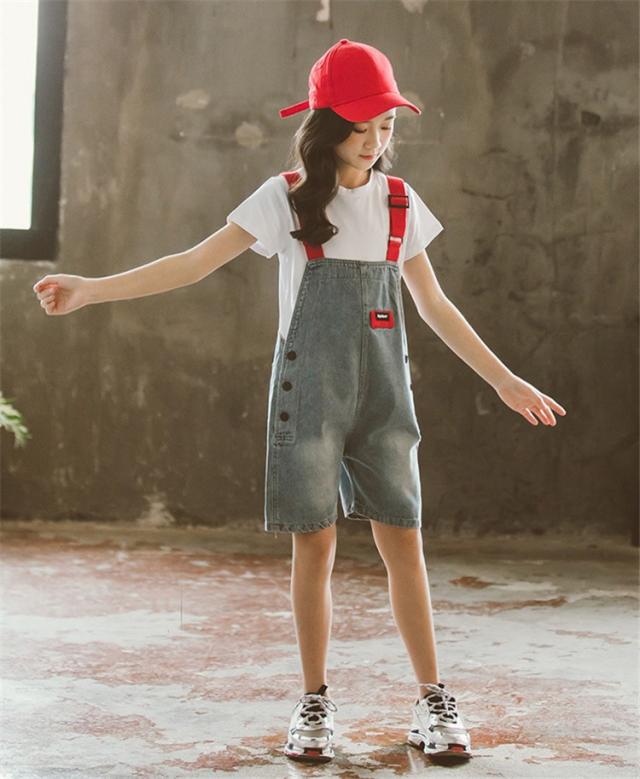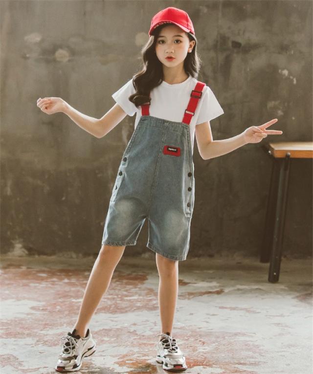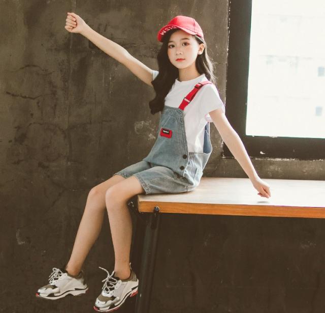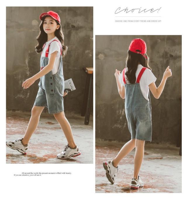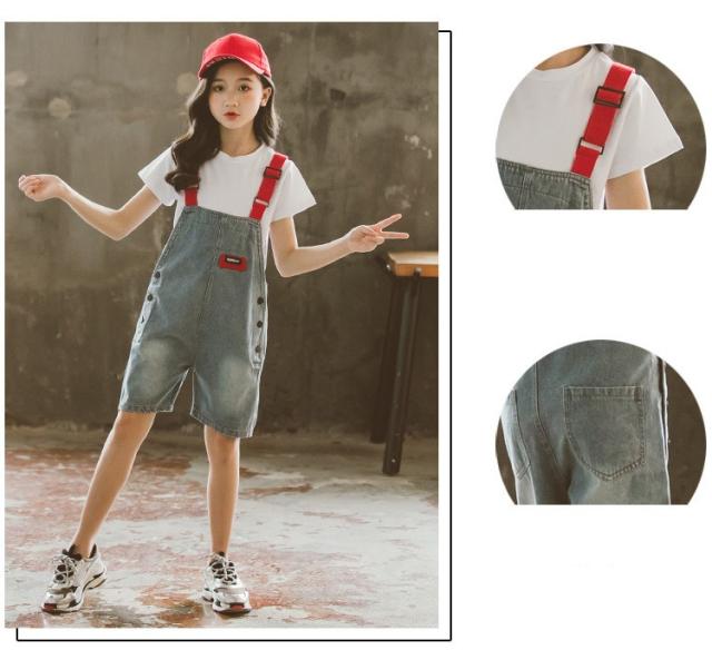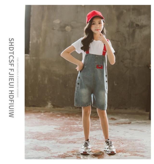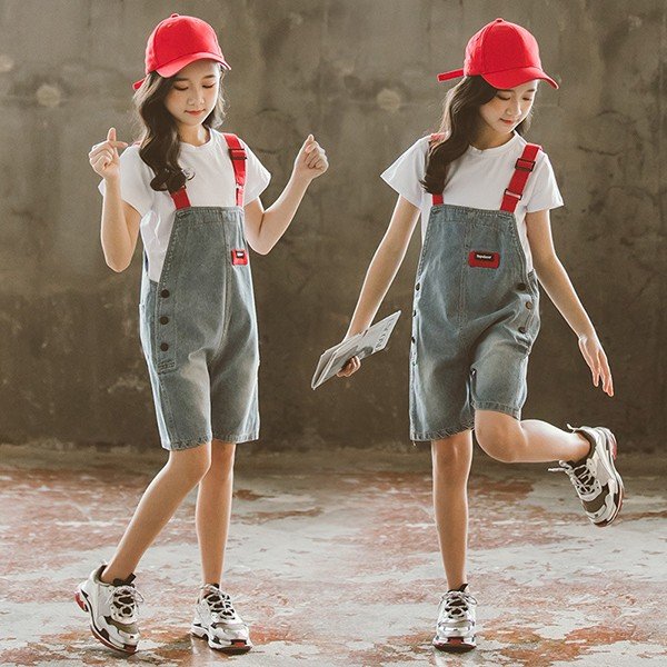 子供服 セットアップ キッズ 女の子 半袖 春夏 2点セット 上下セット Tシャツ 薄手 デニムパンツ 短パン サロペット ジュニア おしゃれ 可愛い カジュアル 新品