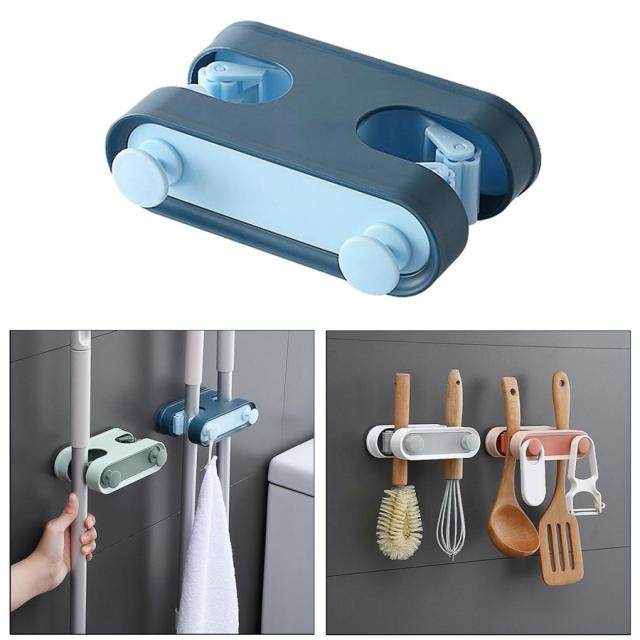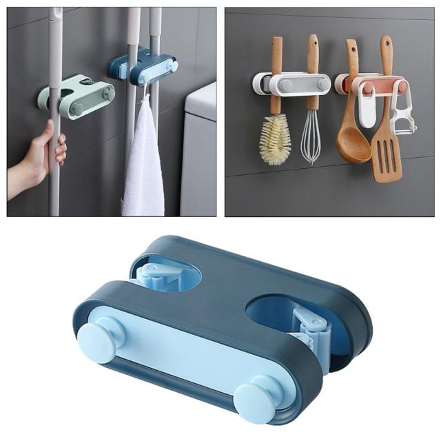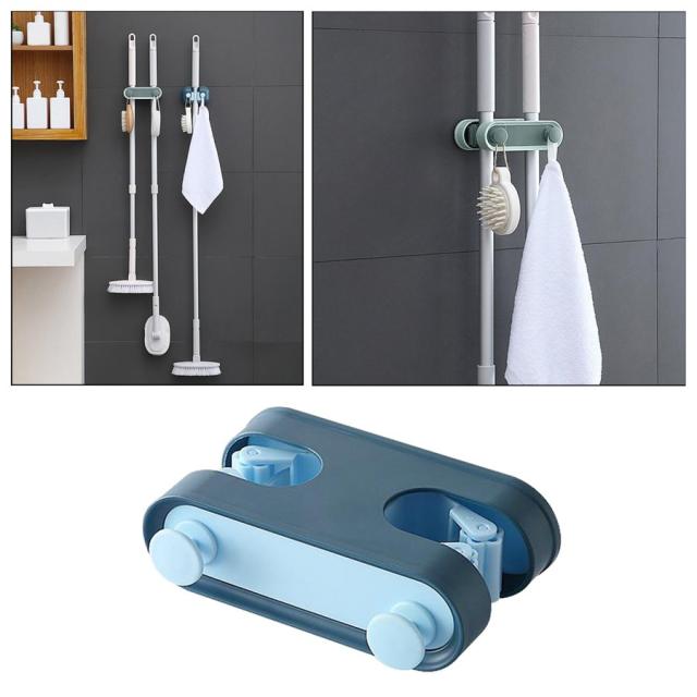 ヘビーデューティーほうきモップホルダー壁掛け収納ラッククローゼットランドリーオーガナイザーブルー