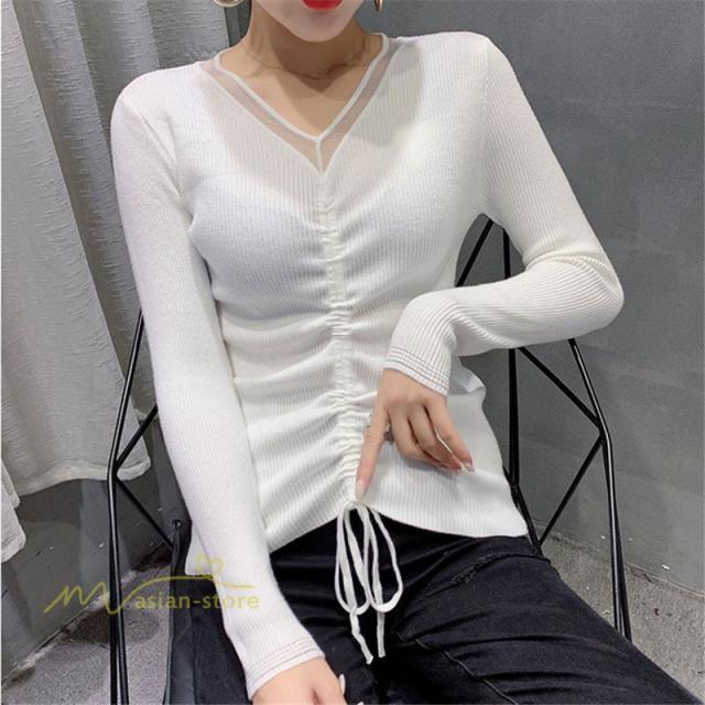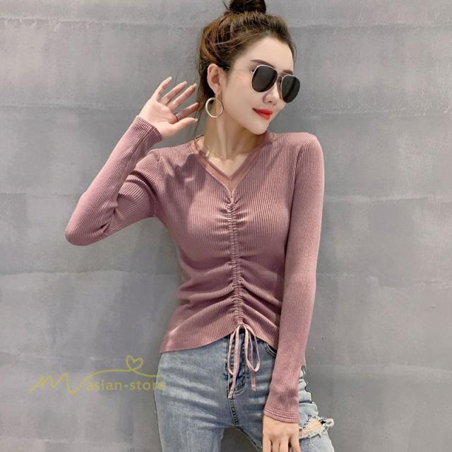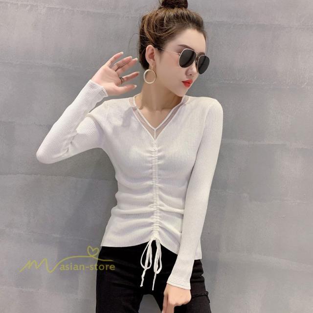 Tシャツ レディース おしゃれ 長袖tシャツ 無地 春 秋 細身 チュニック 長袖 ロンT Vネック タイトTシャツ アンダーウェア カットソー 大人 20代 30代 40代 OL