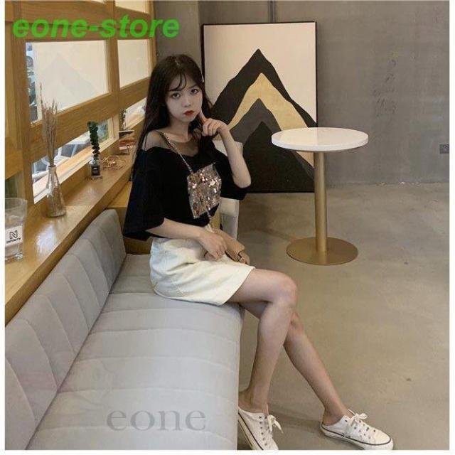 Tシャツ 夏 レディース 半袖Tシャツ 肩出し カットソー オープンショルダー スパンコール トップス ゆったりTシャツ レトロ サマーTシャツ