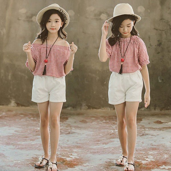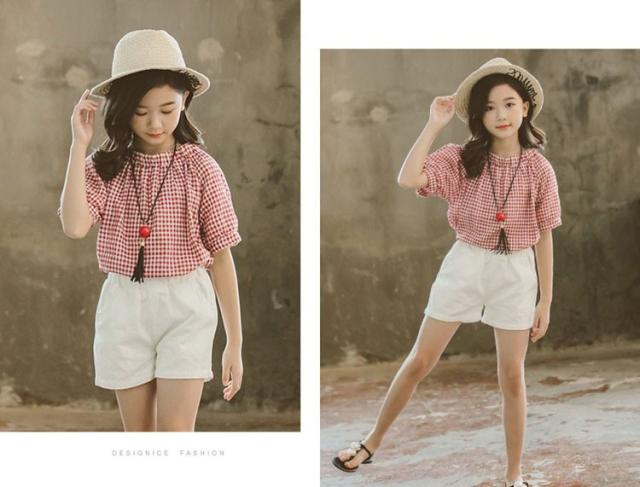 子供服 セットアップ 女の子 韓国子供服 キッズ ジュニア 春夏 上下セット 2点セット 半袖 チェック柄 ショートパンツ 薄手 可愛い おしゃれ 通学着 新品